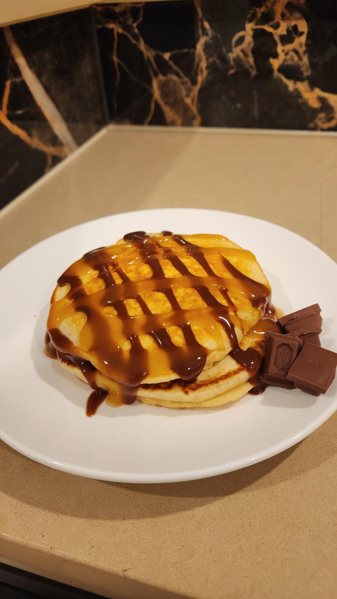 5 – Protein pancakes with sugar free chocolate and caramel sauce, Whittaker's peanut butter chocolate on the side. More of a fun one as a break.