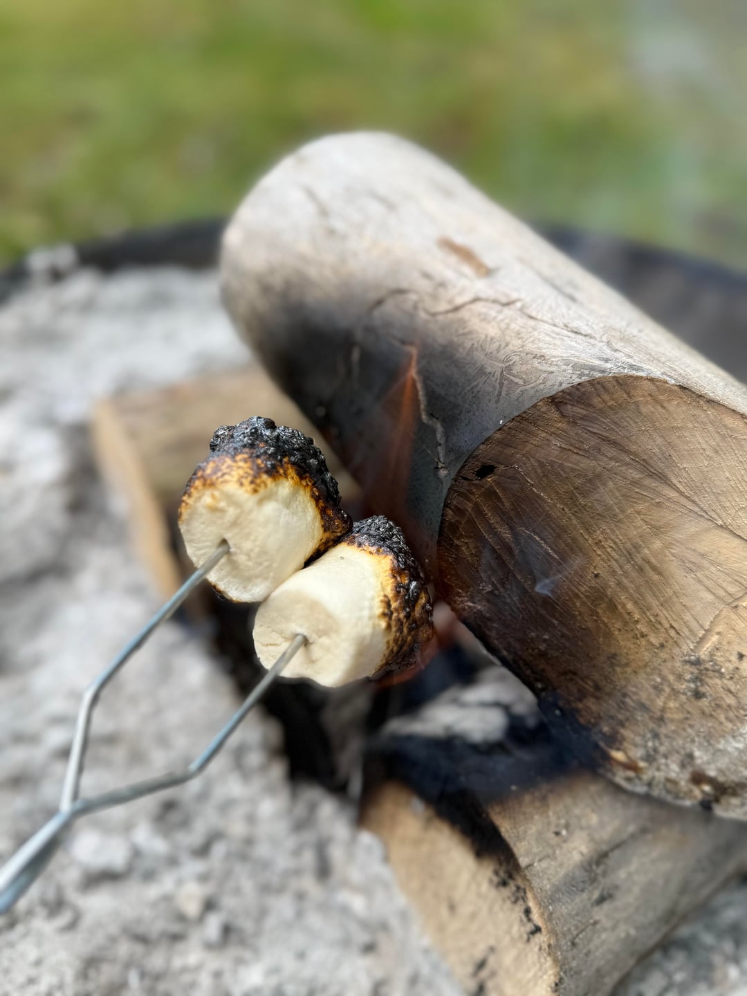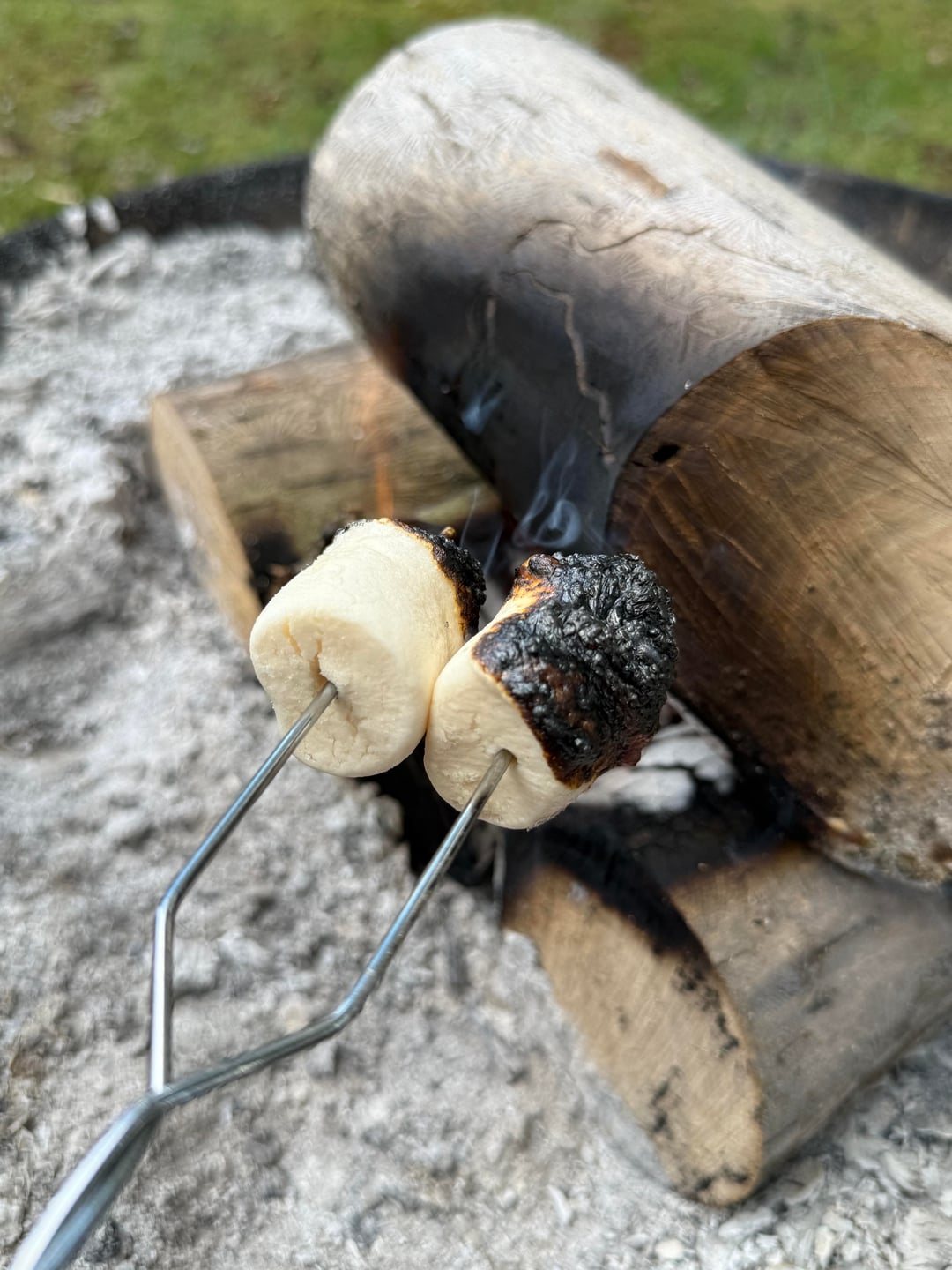 Just relaxing by the fire 🔥 roasting vegan marshmallows