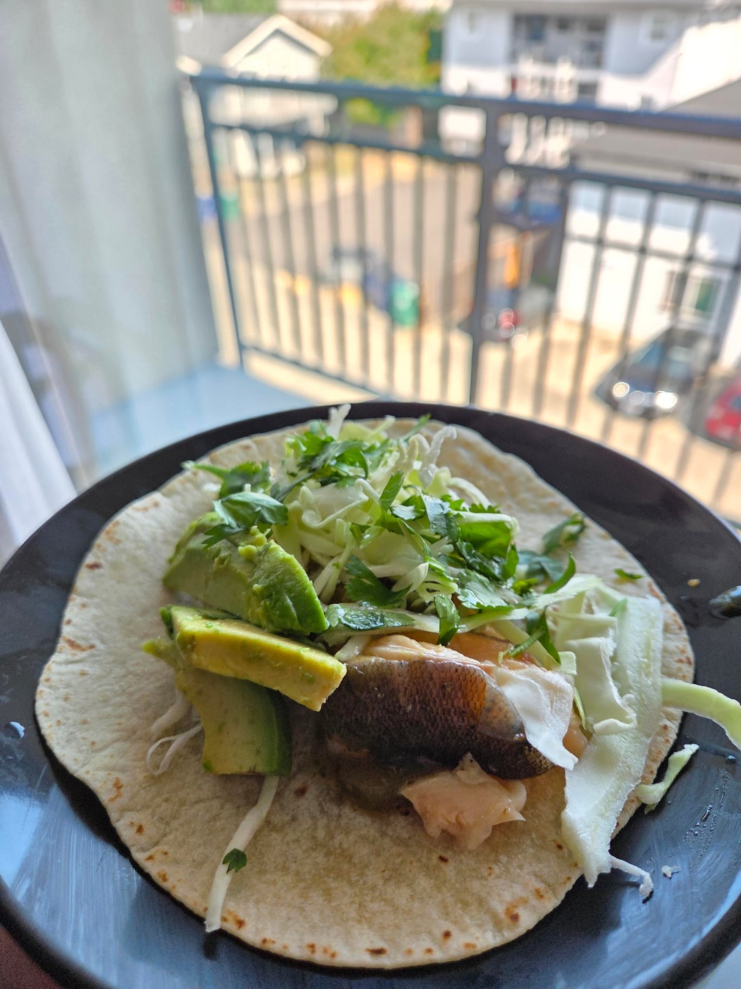 Try adding shredded red cabbage next time you make this taco. Lucky cat. Howd you find the avo with it taste wise?