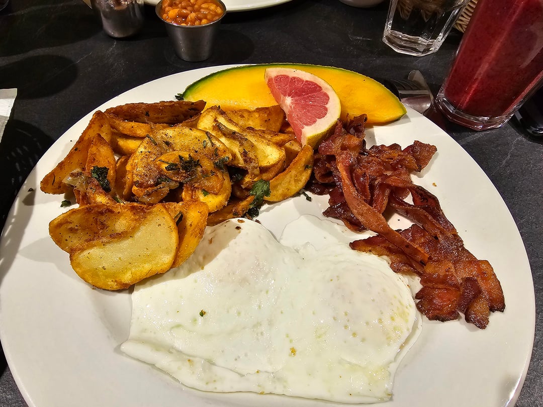 I'm looking to find a restaurant I ate at awhile ago. I was staying at the Sonder on Adelaide West and it would've been walking distance from the hotel. I had a standard breakfast with Lyonnaise potatoes. I was looking to leave a good review but I can't for the life of me remember the name of the restaurant! 😬 I hope someone can recognize the food and the tiny portion of menu seen behind my smoothie.