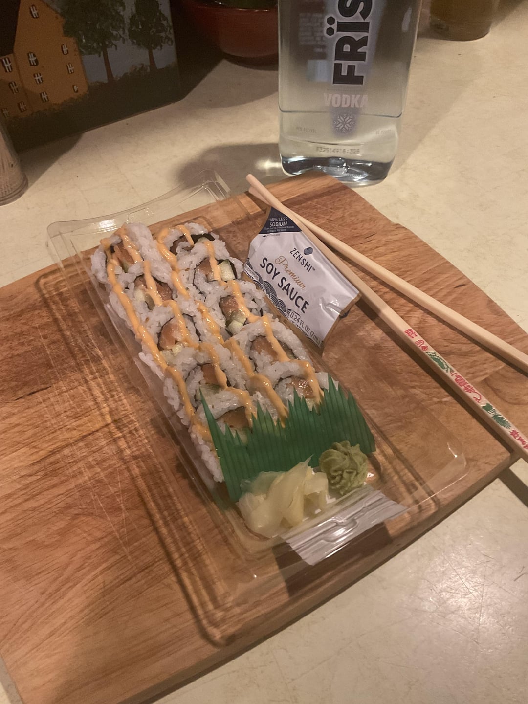 a_duck_in_past_life 1 month ago The last time my fiance bought 5 dollar sushi, it had mold on it and he ate it before he noticed the rest of it with the mold. Never again.