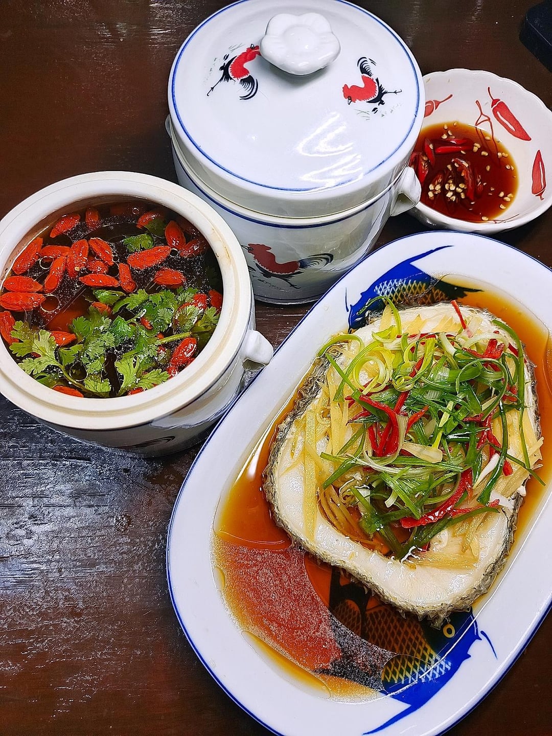 Black Garlic Chicken Soup and Cantonese style Steamed Cod Fish ❤️🤤 i looove double boiled soups and I am amazed that I can now just put everything in the pot, pop it in the oven and it’s done! 💪🏻Thanks to stew mode! Super yummy and flavourful. Pair it with our fave cod, and we are in food heaven