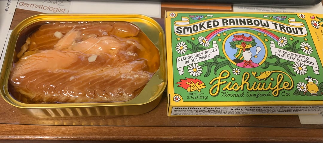 I was given a tin of Fishwife smoked rainbow trout. I’ve read about Fishwife being overpriced for what it was and I agree but still a solid tin. The fish was smoky and tender. I ate it over rice with kimchi and nori komi furikake. Very nice, the oil was smooth in the rice and gave a very rich coating to everything.