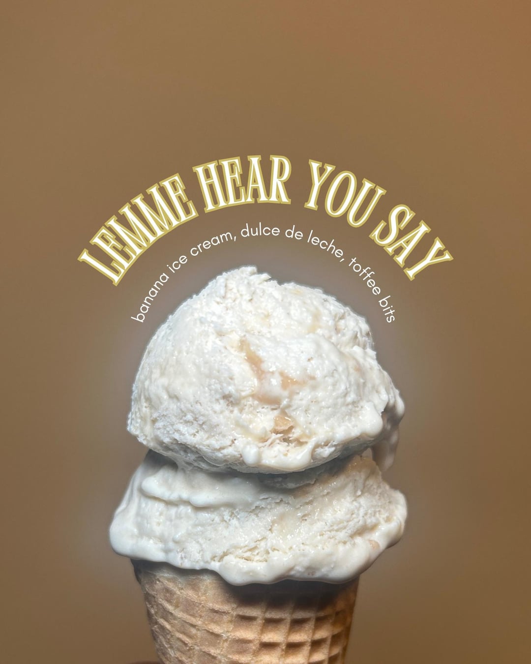 Lemme Hear You Say – banana ice cream, dulce de leche swirl, toffee crunch