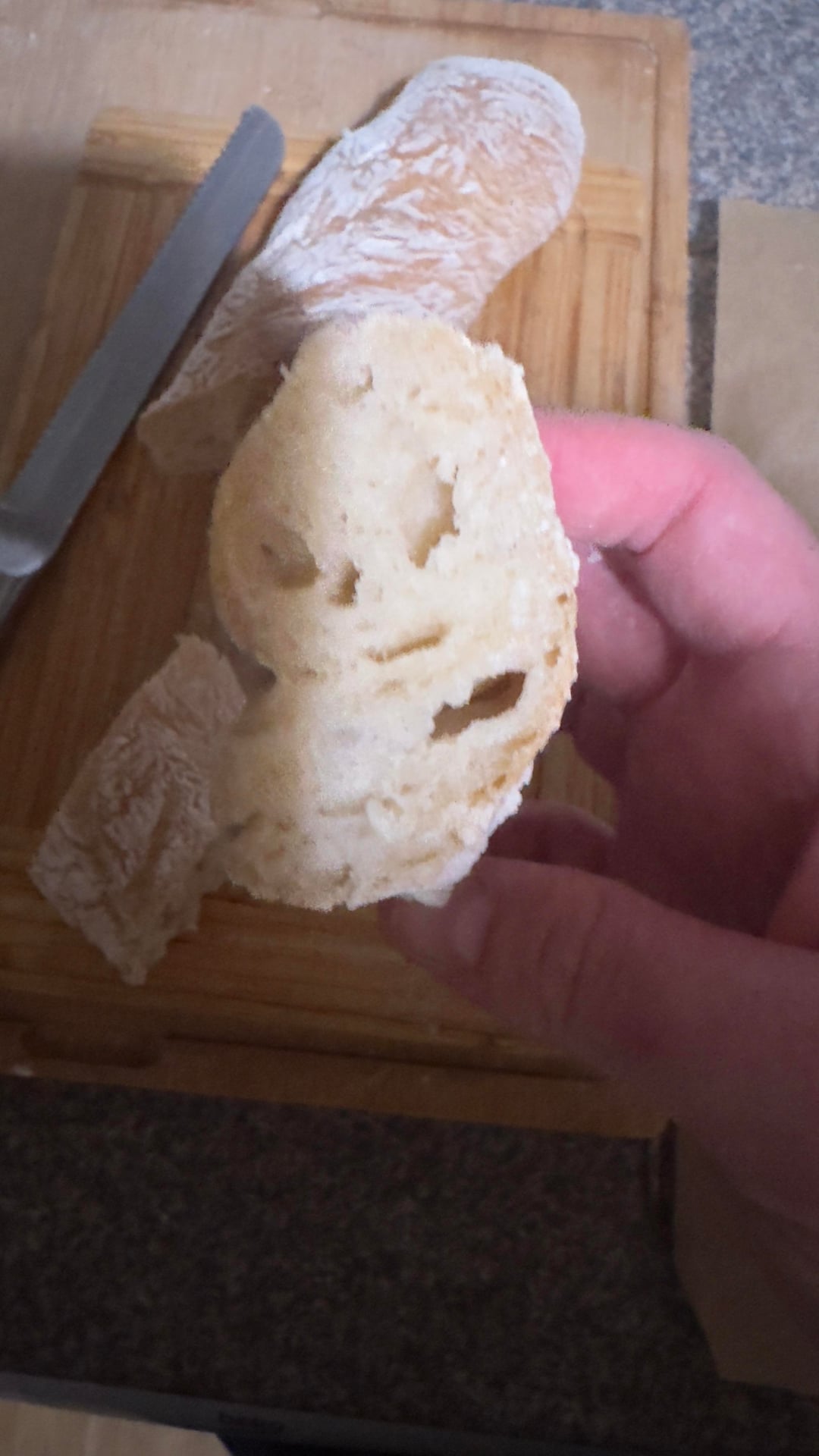 The crumb looks good so the dough was made well but the shaping could use a bit of work otherwise as long as it tasted good I’d count this as a sucess especially for a first time