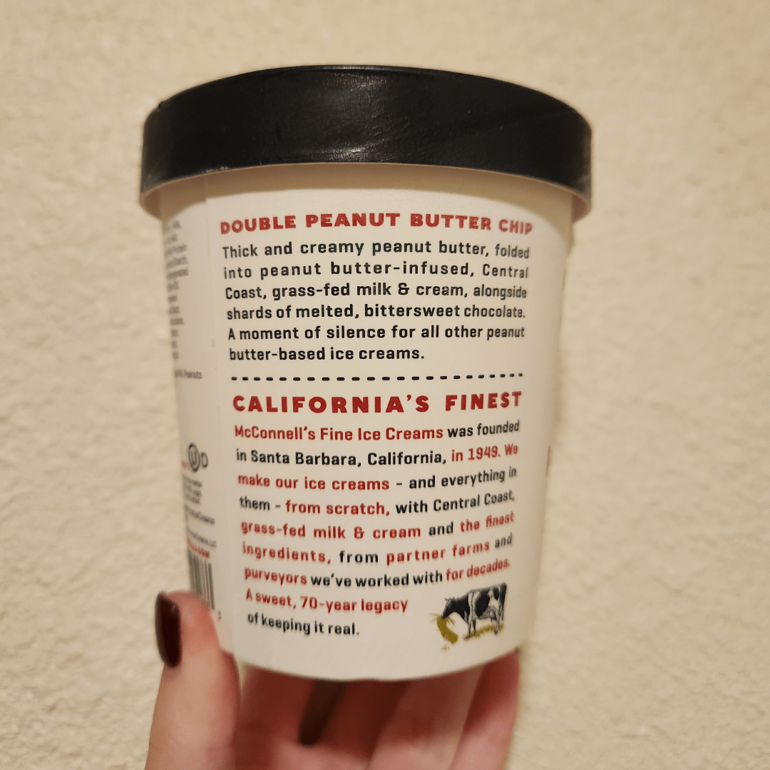 I actually went to the store in search of a different brand of peanut butter ice cream, but they were sold out. I've heard many great things about McConnell's, and felt this would be the perfect time to give them a shot! Found at Safeway in CA.