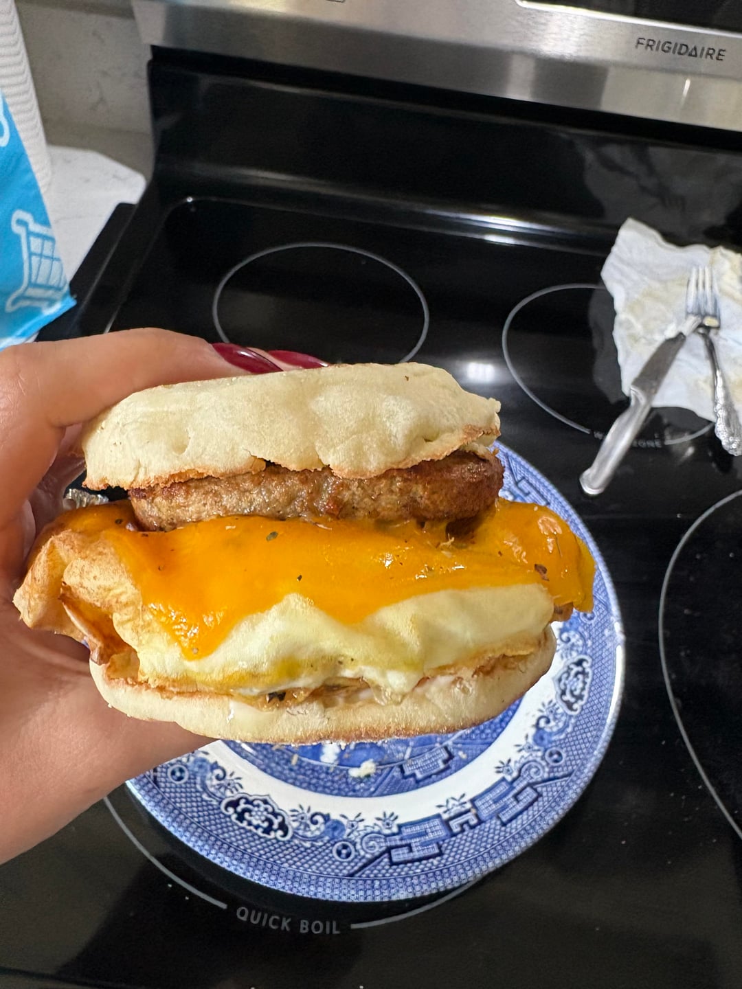 I’ve been doing these too! I like the whole grain lite English muffins though because they have 8g of fiber and I’ll take as much fiber as I can get lol. So filling for sure.