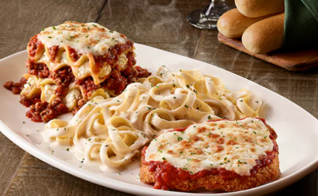 According to Tara Collingwood, MS, RDN, CSSD, LD/N, ACSM-CPT, a Board Certified Sports Dietitian and co-author of the Flat Belly Cookbook for Dummies, the absolute unhealthiest item on the menu is the restaurant’s trademark sampler, the Tour of Italy, offering “three OG classics all on one plate!” per the menu, “all with homemade sauces made fresh every morning.”