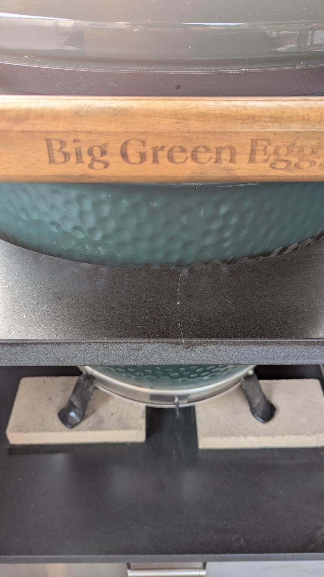 Worth noting that I experienced an earlier issues with this same granite, the slab underneath the egg cracked during an earlier high temperature pizza cook. That one was obviously under a load so it wasn't as easy to blame the granite itself. I made a previous post about that issue: https://www.reddit.com/r/biggreenegg/comments/1kq2bj4/granite_slab_cracked_under_egg_after_high_temp/