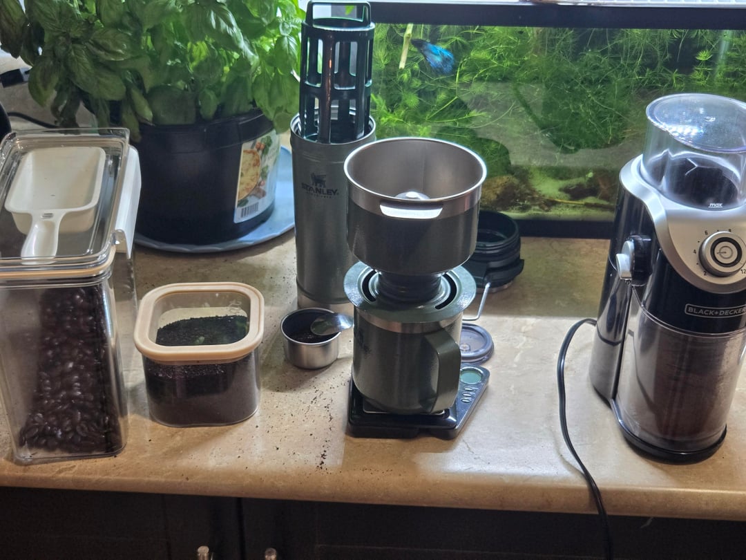 It's a simple, inexpensive setup that allows me to enjoy a hot coffee anywhere.
