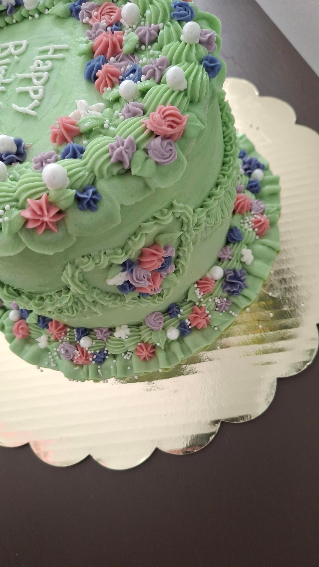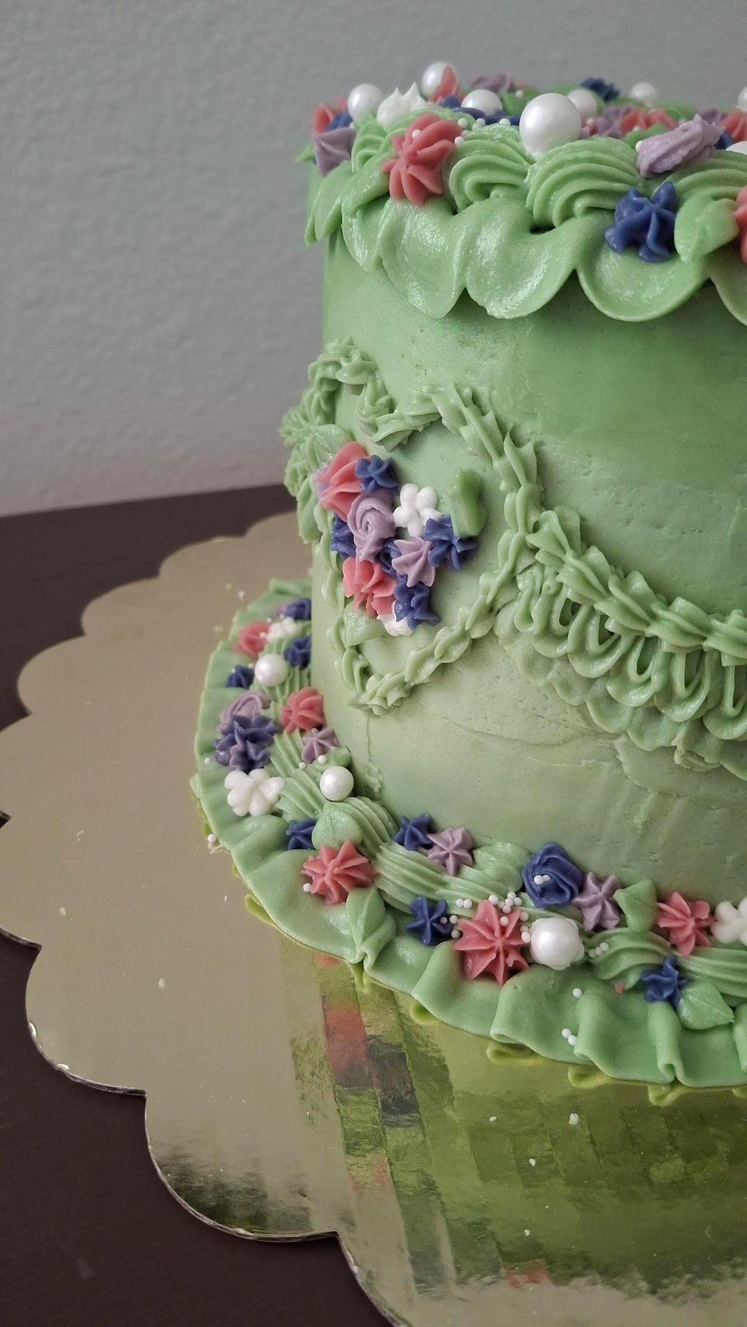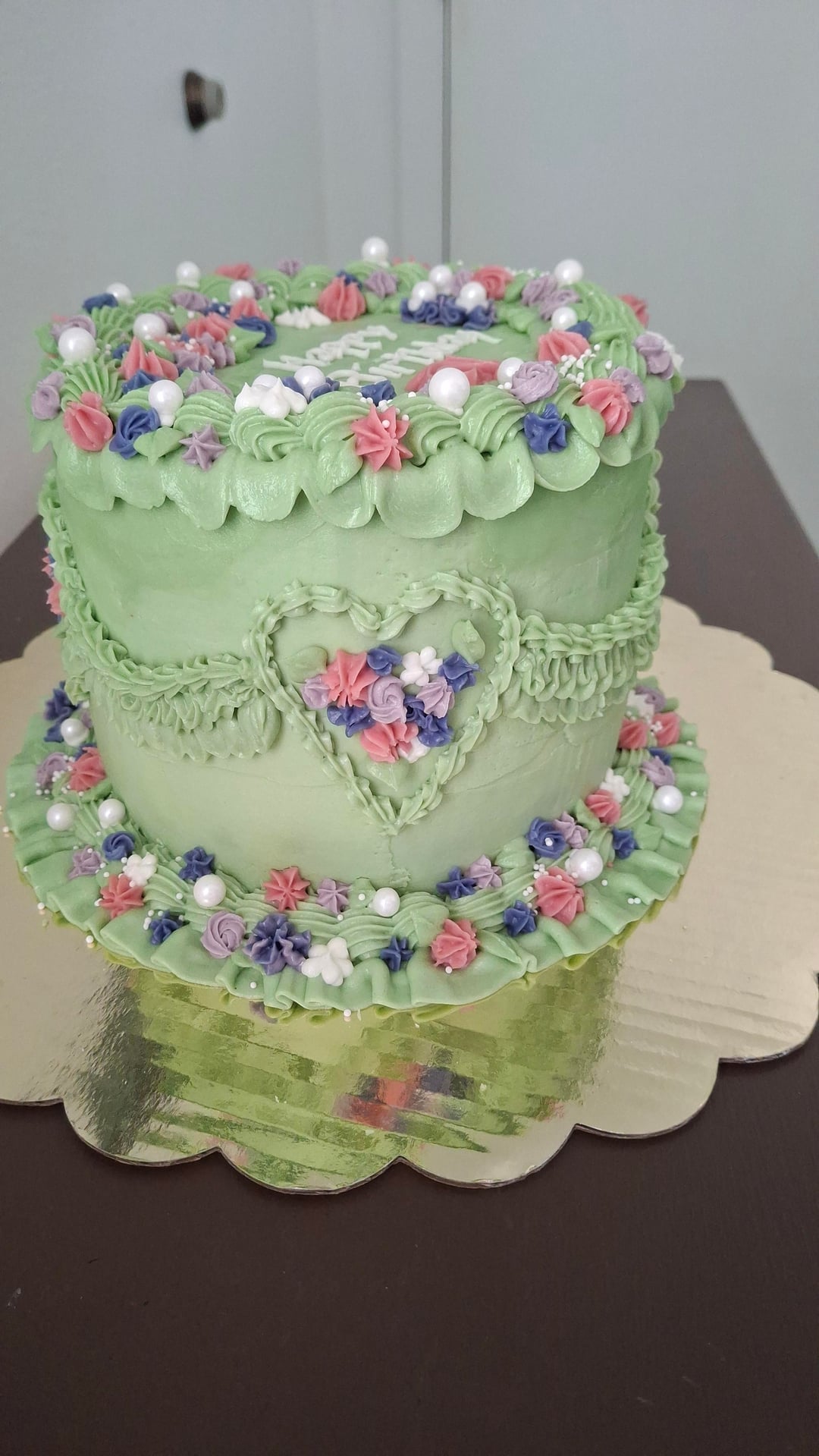The cake itself is cherry chunk cake, key lime buttercream and keylime curd for the filling, aka a cherry limeade cake. I could have gotten the base smoother but I quite honestly couldn't be bothered since I was running out of time and my mom isn't a perfectionist like I am 😅