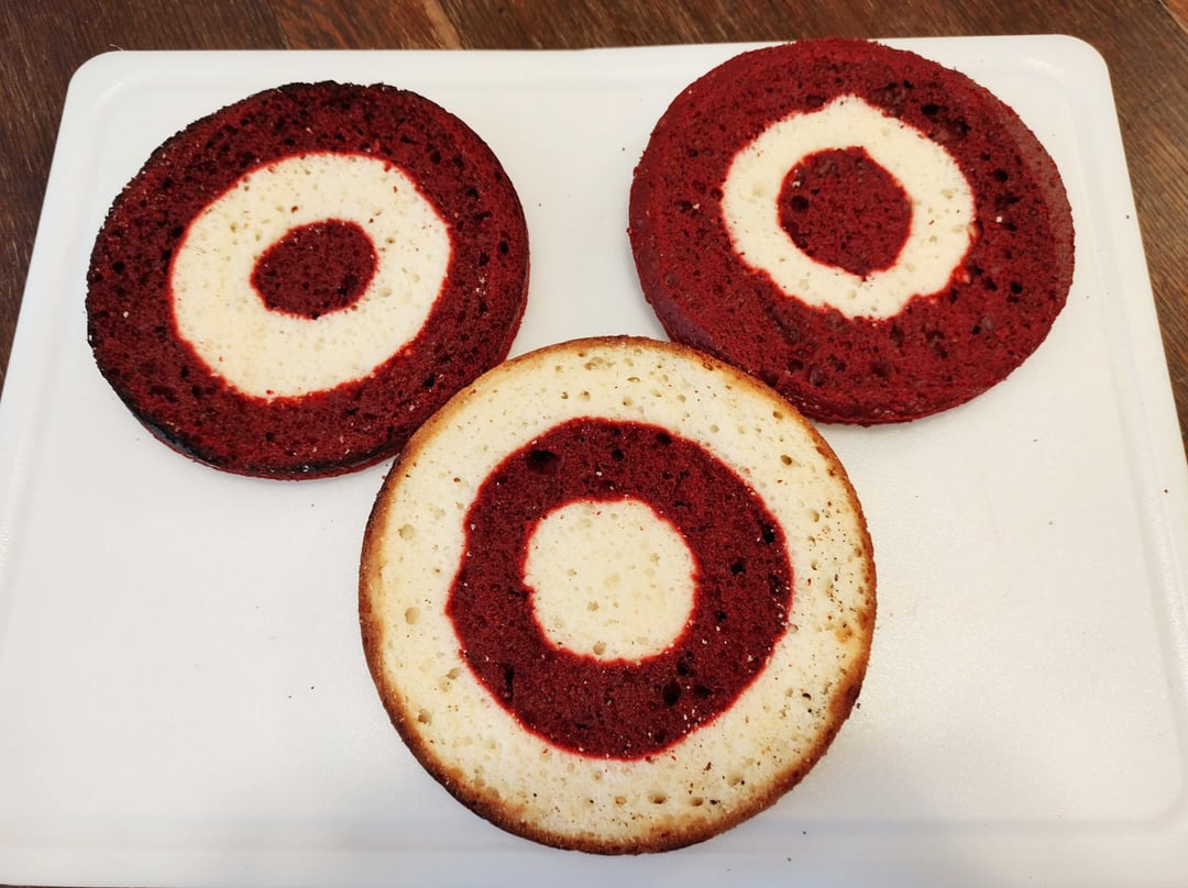 Red velvet and white checkerboard cake with tofu cream cheese frosting. I used vegan cake mixes and silken tofu instead of eggs, 1/4 C tofu equals 1 egg 🎂🍰😋
