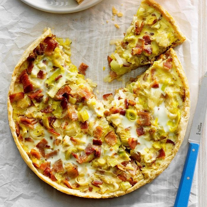 This tart has a flaky pastry crust and tasty filling of leeks, bacon, eggs and cream. Satisfying and delicious, it makes a nice brunch dish, but you can serve it for any meal. —Anneliese Deising Plymouth, MI