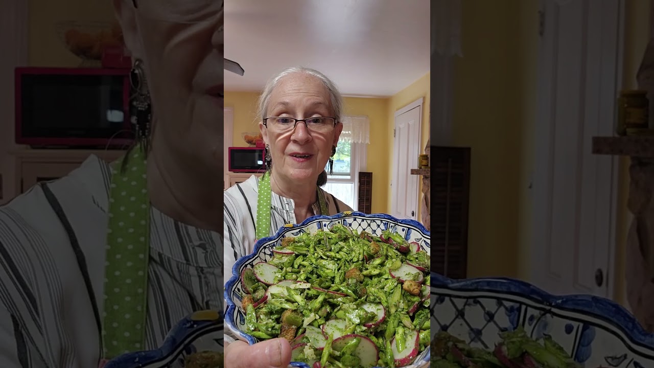 Morning and welcome to America’s Home Cooking. Here is asparagus salad with radishes, Romano cheese, and croutons right here. So listen, you take care and have a great day. Bye bye. Dining and Cooking