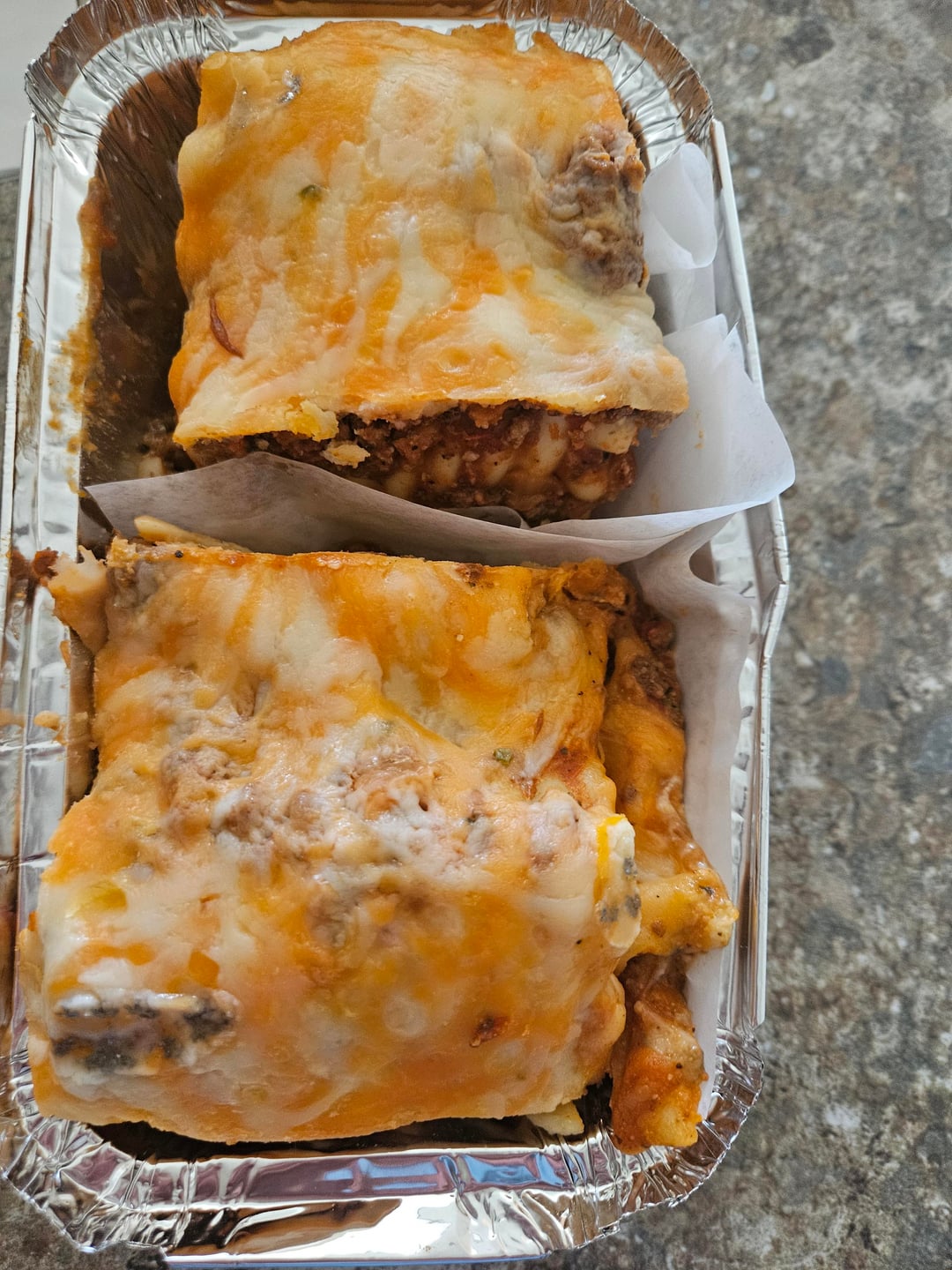 They take a bit more time, and are a bit messier, but the flavour is fantastic. But what I truly love ❤️ about this recipe is that the portion sizes are controlled. Further, I can package 2 lasagna portions (Picture 2) in each freezer container.