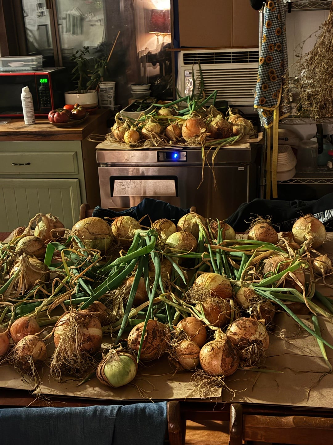 Haulby Sageyg03 7 Comments pflanzenpotan 2 months ago Whats the plan for these beauties? TheDarbiter 2 months ago That first photo is r/accidentalrenaissance r_daniel_oliver 2 months ago Cool, you won’t have to go out for more onions for at least a day or two! STVFM 2 months ago OMG! Please tell me your plans for them! 777bambii 2 months ago I peep those heirloom tomatoes in the back…delicious photos Random-bookworm 2 months ago 😆 this makes me think of the potato scene in My Big Fat Greek Wedding FoxLark 2 months ago whats trick for growing onions so well! mine keep dying 😭