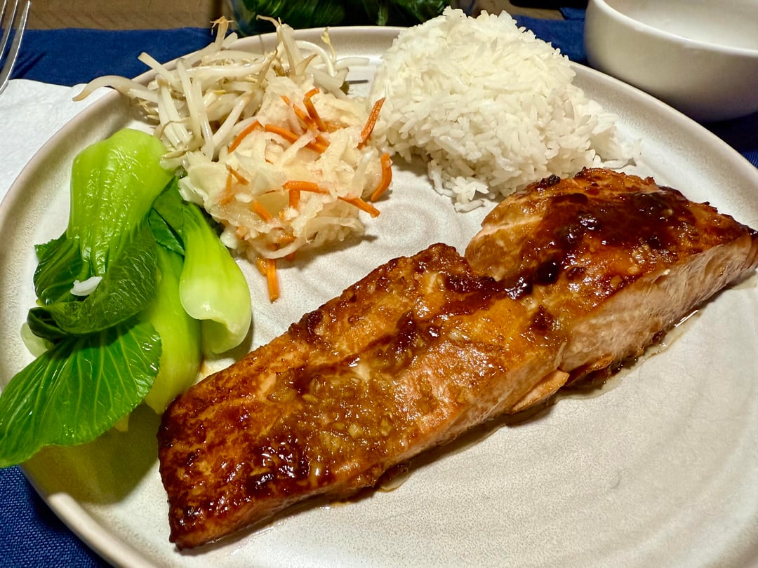Faroe Island salmon with a homemade stir fry sauce, bok choy and pickled veggies. by Punch_Your_Facehole 1 Comment Punch_Your_Facehole 2 months ago **Marinade I used for about 1.5 lbs of salmon:*** 1 tbsp hoisin sauce * 1 tbsp oyster sauce * 2 tsp soy sauce (I used La Choy) * 1 tbsp rice wine vinegar * 6 cloves garlic (minced) * 1 tbsp fish sauce