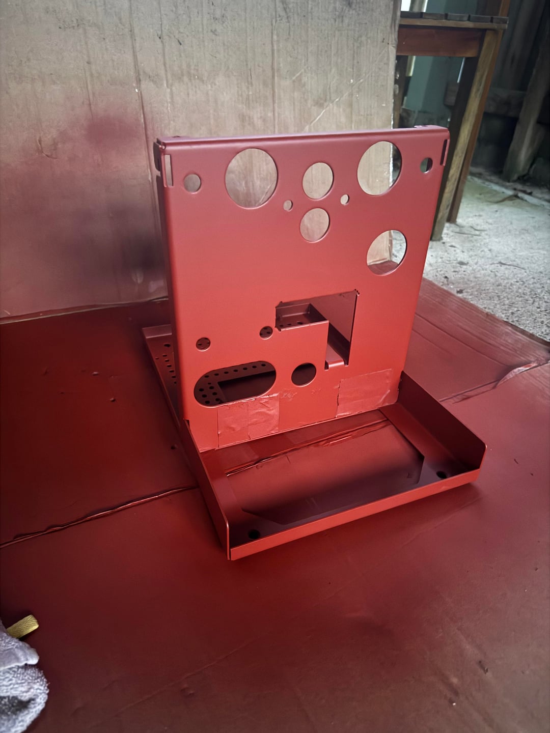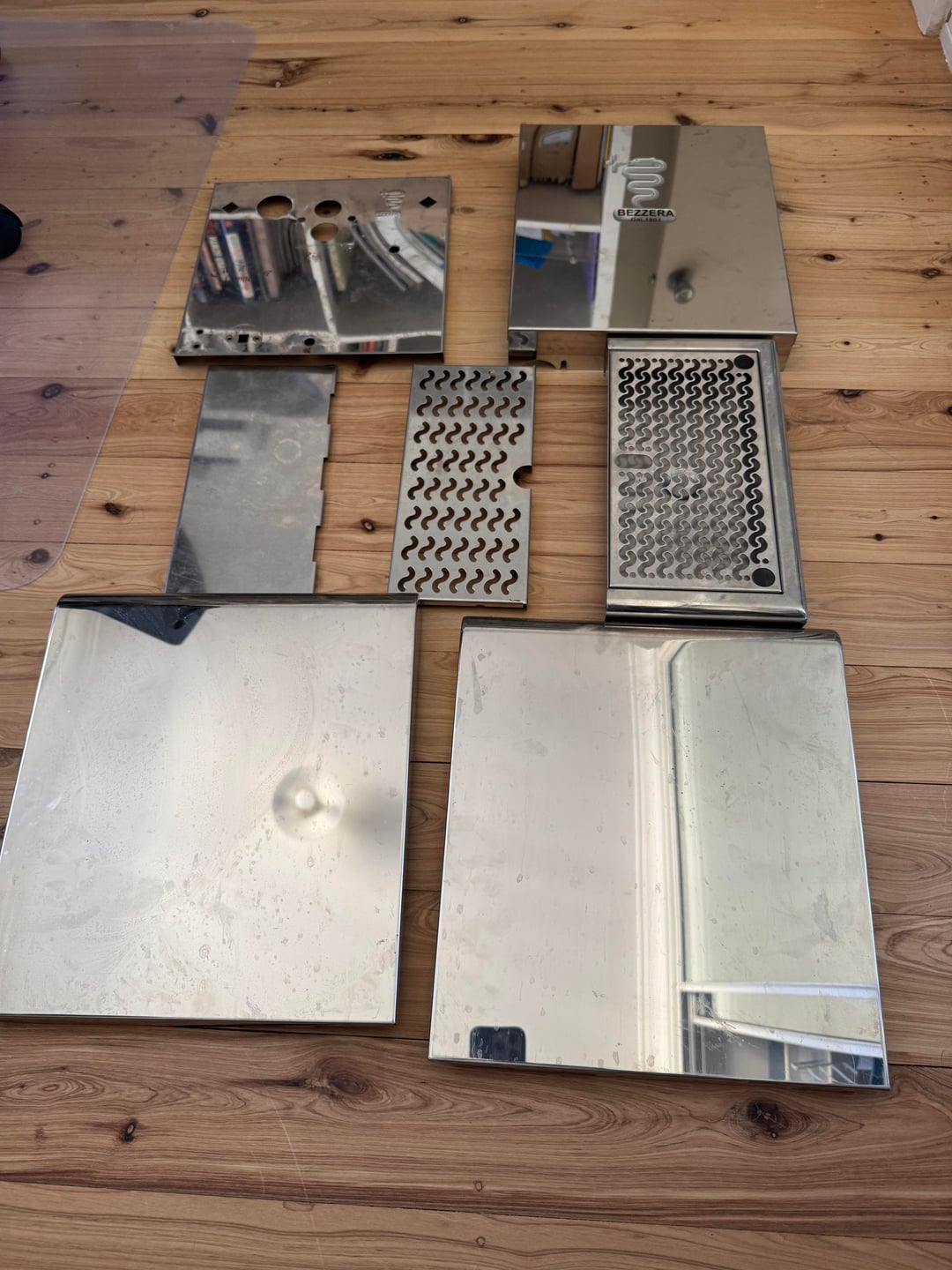 Once I got everything apart I descaled the remaining pipes (very satisfying), ground off the rust from the chassis and repainted it. A lot of the plastic covers on the spade plugs were cracked so I replaced all of these as well. The group head was in decent condition after descaling, I just replaced the shower screen and all the o rings. I polished the stainless steel case with metal polish and foam pads. The front cover was really scratched up so I decided to sand it to try to restore the mirror finish which I now regret. I got it most of the way there but had many failed attempts and spent way too much time and sanding pads on this part!