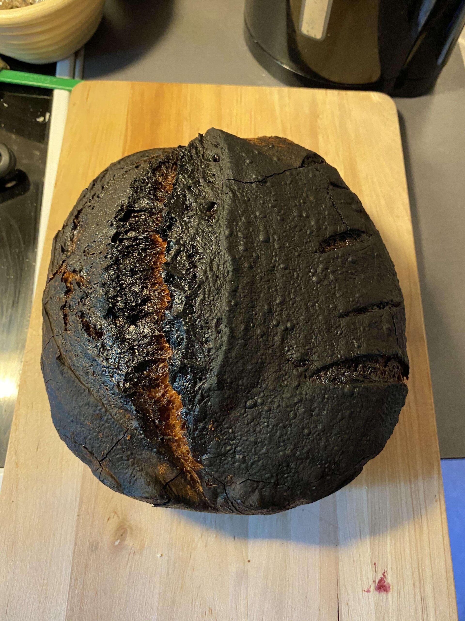 Ok, this has happened in some way or another for most of us. Carve off the charcoal, like you are cutting the rind off a watermelon, and you’ll have bread that is good for making croutons or bread crumbs.