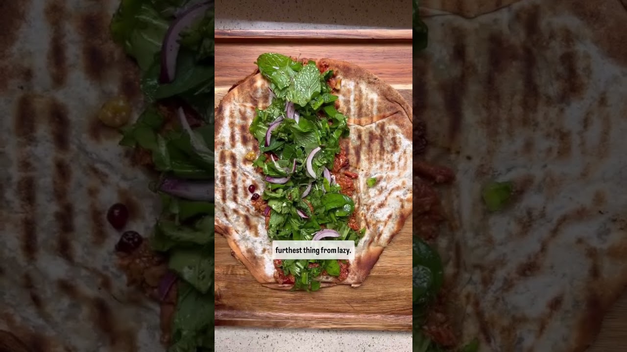 Okay, so tonight we had gaft pizza, the ultimate lazy mom dinner. And since I made him ham a few days ago, I had leftovers in the fridge. And anyone who’s made him hamada before knows that it makes the best leftovers. So I made a quick and simple herby salad. And honestly, it was so delicious and the furthest thing from lazy. Straight into a lafer with plenty of pickles and chilies, and you have yourself one of the tastiest wraps ever. All right.