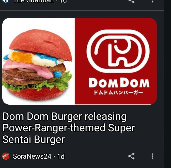 “Those familiar with Dom Dom Burger know they like to go all out with their concepts, and much like the show it’s based on, the Super Sentai Burger is a visual-effects-laden affair. In Himitsu Sentai Gorenger, the five heroes are colored red, blue, yellow, pink (peach if you want to nitpick about it), and green. These colors are all represented in the ingredients of the Super Sentai Burger.