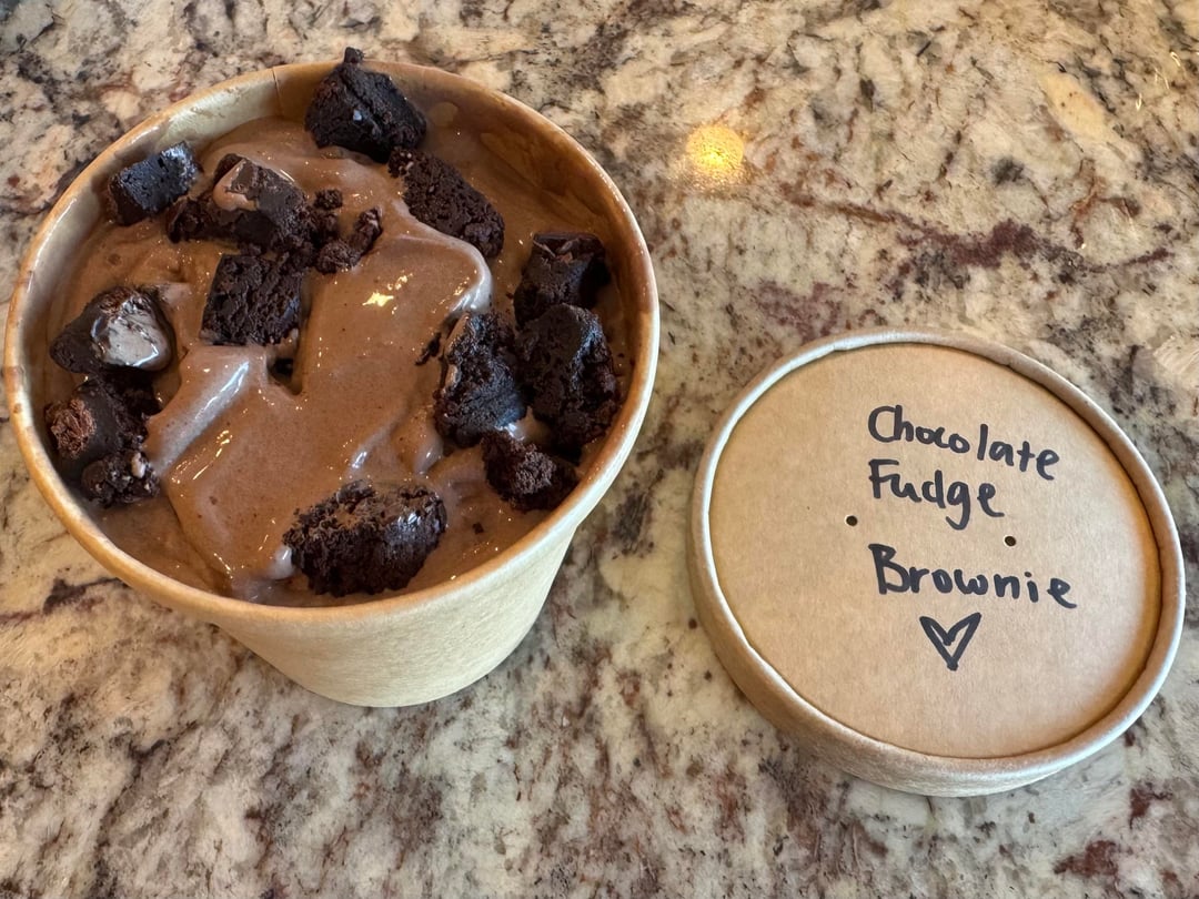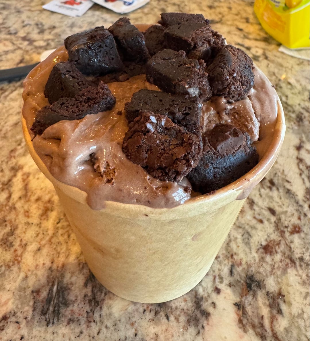 a very generous cup or 1 1/2 cups of brownies (this is about 3 brownie squares if you cut 16 total squares plus an extra one for each pint to top it off), cut into small pieces