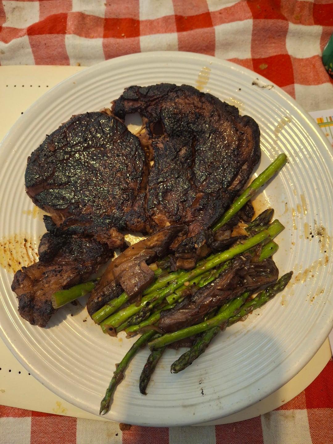 Unlikely-Sympathy626 6 months ago Tad too long or too hot, but overall nice! I like you put asparagus and mushroom in there as well.If you like beans serve on top of some lentils. I love steak lentil, asparagus, mushroom combo.Important thing keep trying! But then again, some people like steaks well done. If this is case in your house then looks good for that.But it looks like a marinade pack. If it was, I would suggest wiping the meat dry, cook it till almost to your liking and then add in remaining sauce.Those sauces especially if bbq or anything sugar or soy base is most likely the cause of the burned crusts.