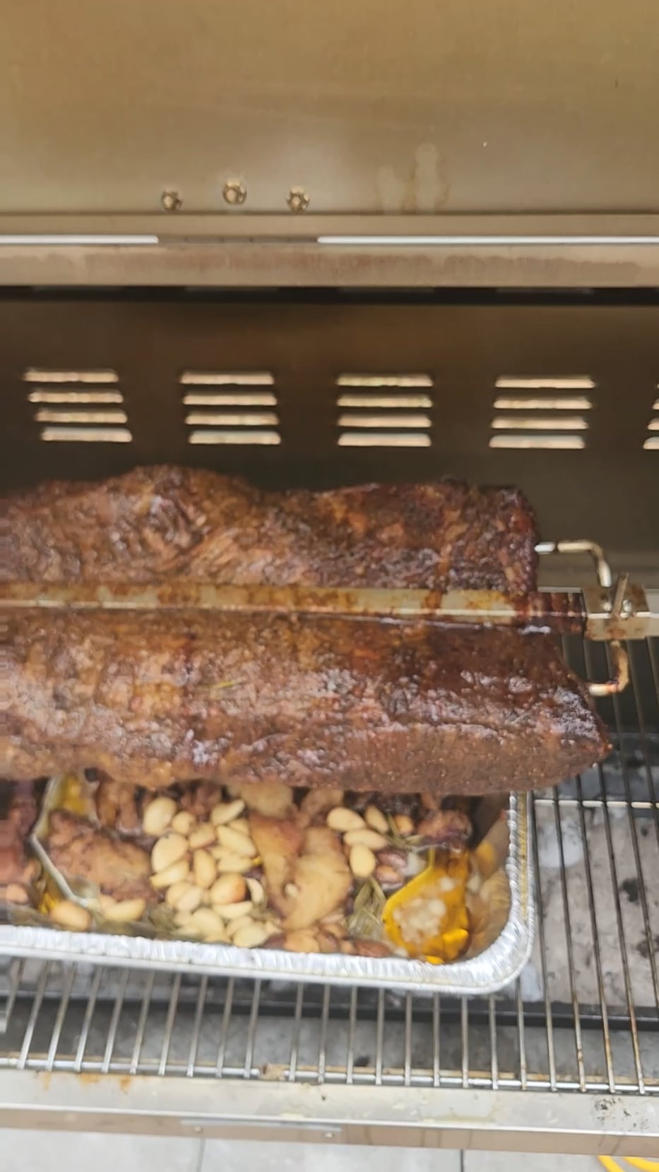 basting in tallow, garlic and rosemary. by Evening-Animal-4820 15 Comments Yardboy 6 months ago That is looking fantastic. Rich-Context-7203 6 months ago Maybe I’m missing something. Seems as if only the ends are getting any direct heat from the charcoal. Seems to be browning nicely, anyway. I am interested in the results… TightONtailS 6 months ago Ermagerd. I’ll be over soon lol DubsAnd49ers 6 months ago Thanks for the update! How many hours in are you? whatsupchiefs 6 months ago Nope…….. Pure-Shoe-4065 6 months ago [Looking good!](https://share.google/46cSRcnL1ZLu77TLO) FunFlaCouple1 6 months ago The pan is in the right direction! Thank tiny baby Jesus! This is actually looking pretty righteous here brother!! Yogalien 6 months ago Are you grilling a brisket? WallAny2007 6 months ago Curious why keep it spinning if it’s wrapped? So far it looks awesome. mjpfinger 6 months ago Looks lip smacking good schpanckie 6 months ago Please distribute samples so we can accurately assess your cooking style……bonus points for suggesting a well paired beer…..looks great….enjoy HangoverGang4L 6 months ago Sweet jesus…that looks amazing. And I love the idea of wrapping it while it’s still on the rotisserie. What’s being served with it? IndependenceDizzy891 6 months ago Shit man stop it already and slice that thing up I’M STARVING. hinman72 6 months ago I appreciate your commitment to the rotisserie! Looks great!Could you taste the charcoal flavor on the meat at all?The basting liquid looks really good!If you wanted to make a gravy you could take the fat in the pan and make a roux with it.I look forward to the next post of yours. kwagmire9764 6 months ago https://youtu.be/TcGJJ-egB40?si=YXbtYd3z6Ptncmpi