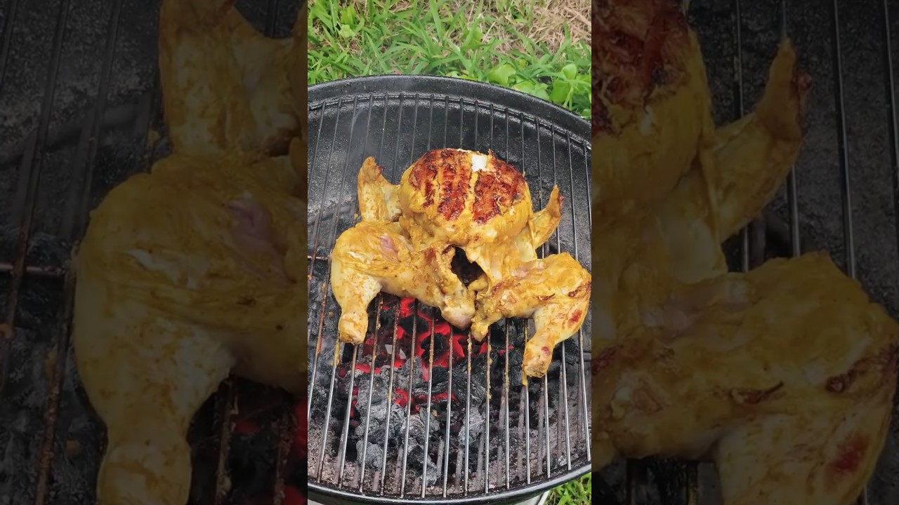 BBQ Chicken: Rub chicken with salt, add half paste with vinegar, marinate overnight, BBQ over charcoal, finish in oven on seasoned potatoes (tip: cover garden potatoes with cardboard to avoid sun).