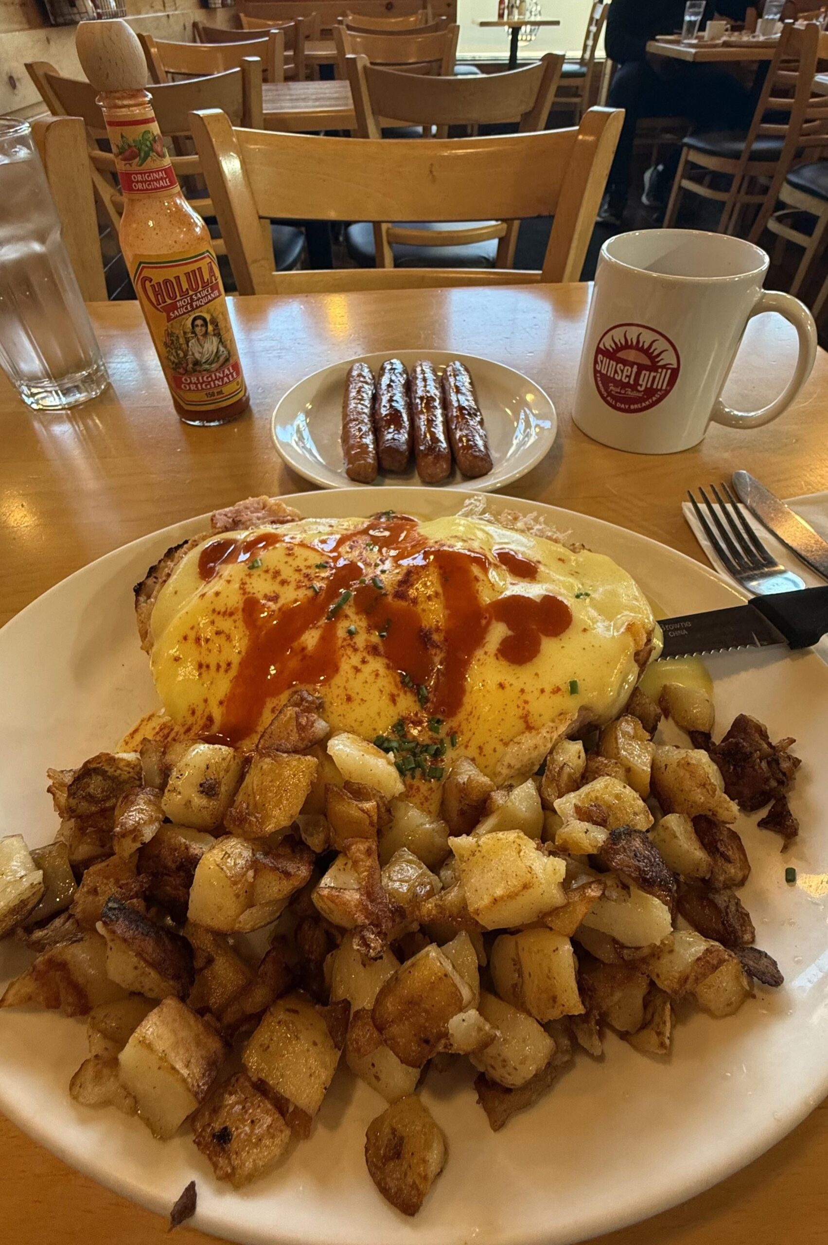 Hitcap_gg 5 months ago That plate looks like it could knock me out for the rest of the day, but in the best way possible. Hash browns, omelet, sausage, and coffee all together is basically the definition of a perfect diner breakfast.