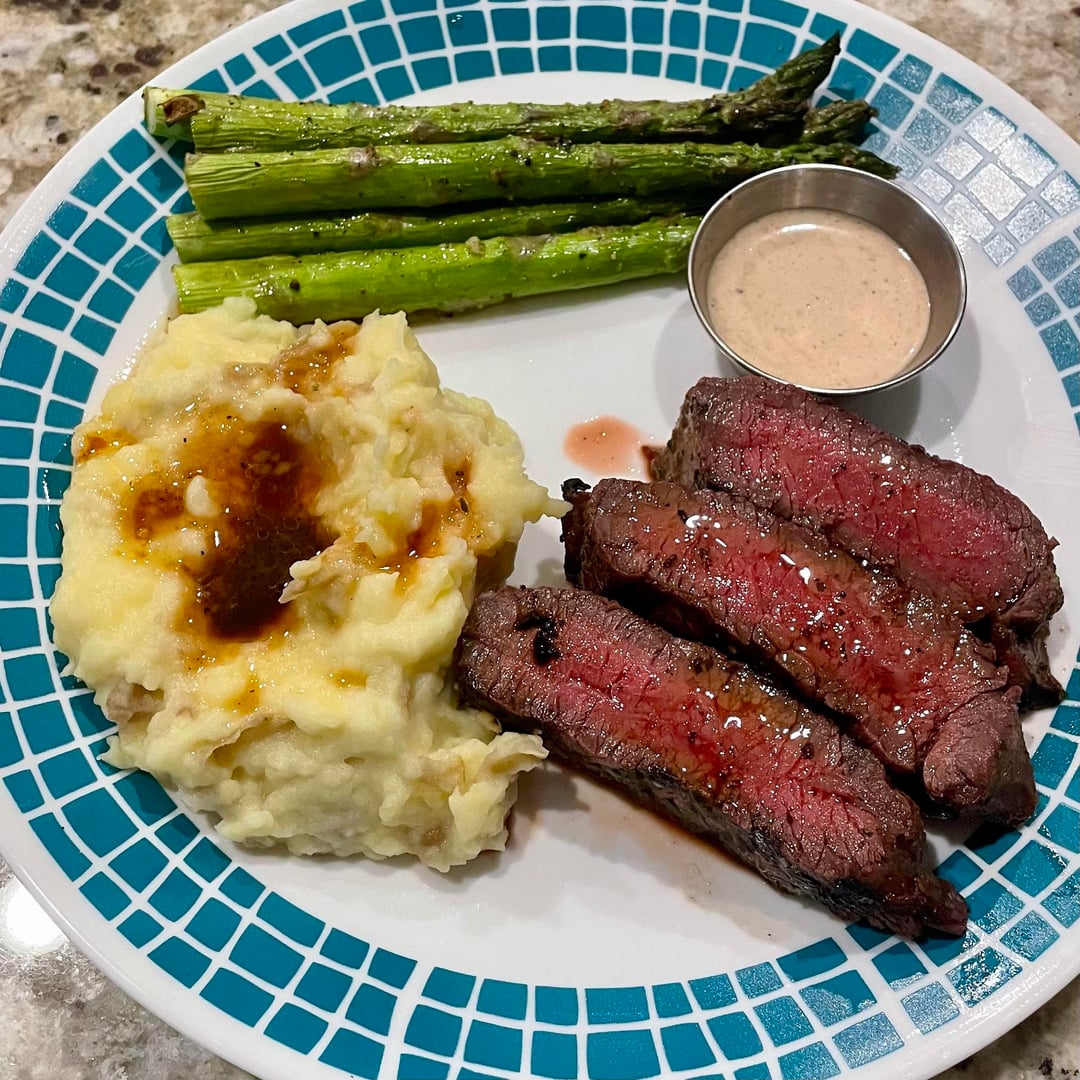 About a 1.2 pound prime sirloin grilled about 3 minutes per side and rested for 10 minutes, then sliced for dinner. Pretty damn good 👍🏼 and don’t worry the pup got some too.