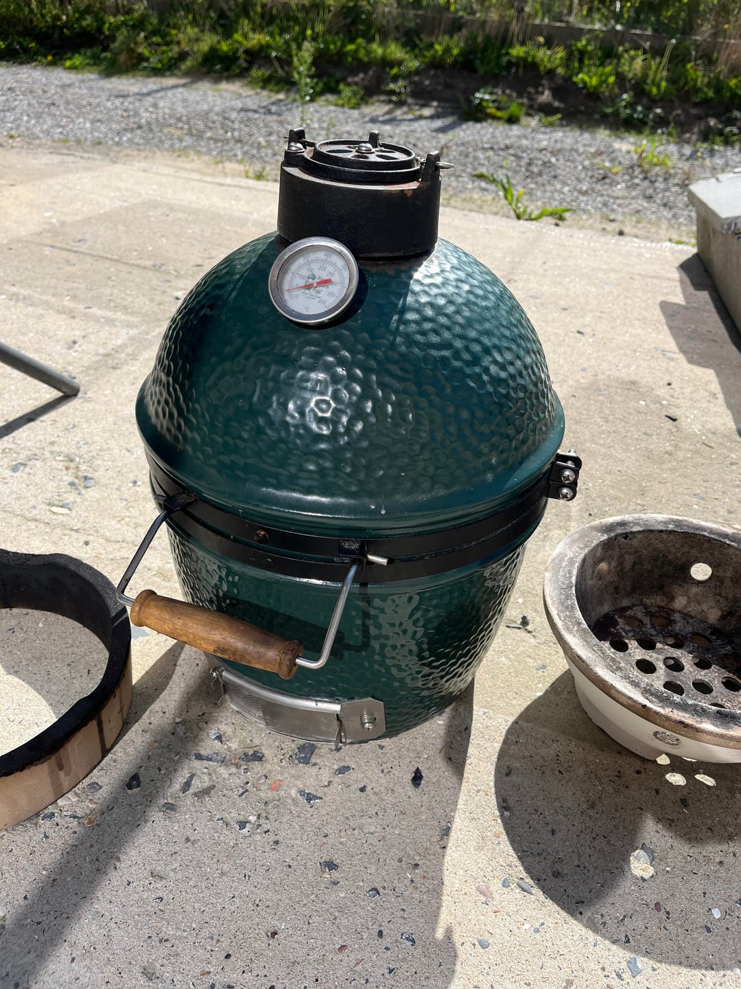 Last week I was able to buy this Big Green Egg Mini for €100. I was wondering how old it was because of the handle. I found some markings on the egg but not a specific year. Do you guys know what year it was build approximately?