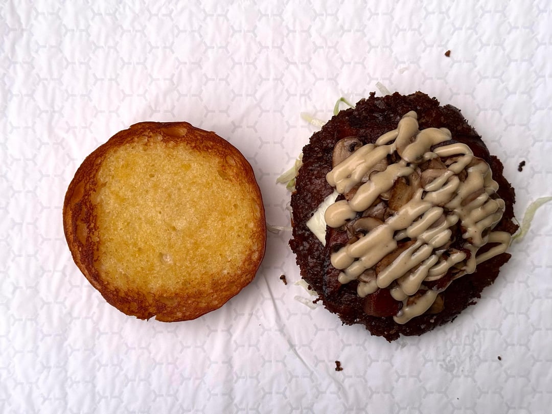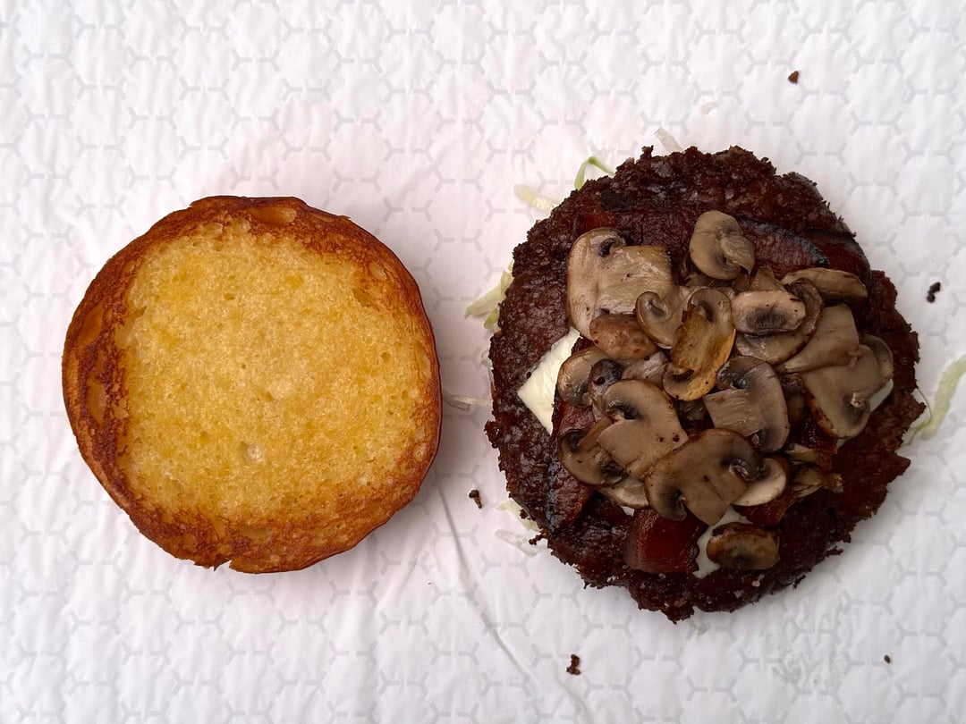 Mmmm Swiss, mushroom and garlic sauce. Solid combo.