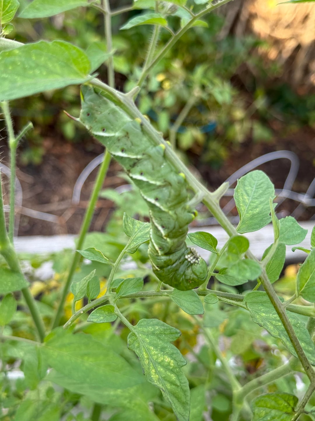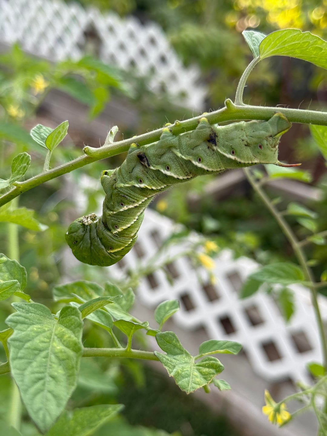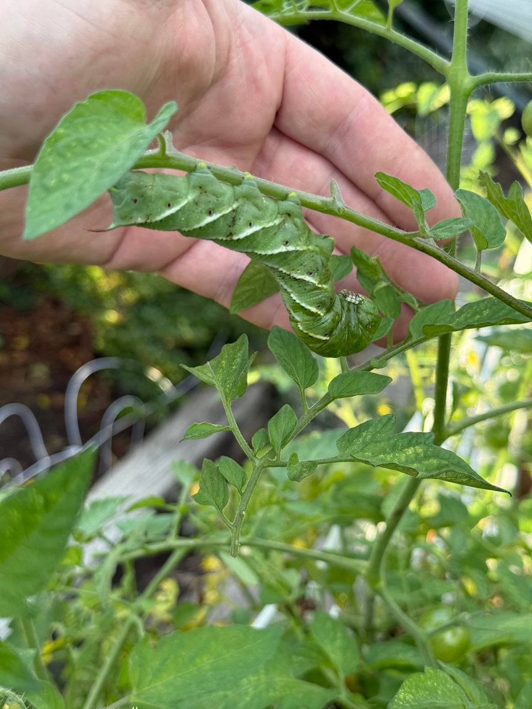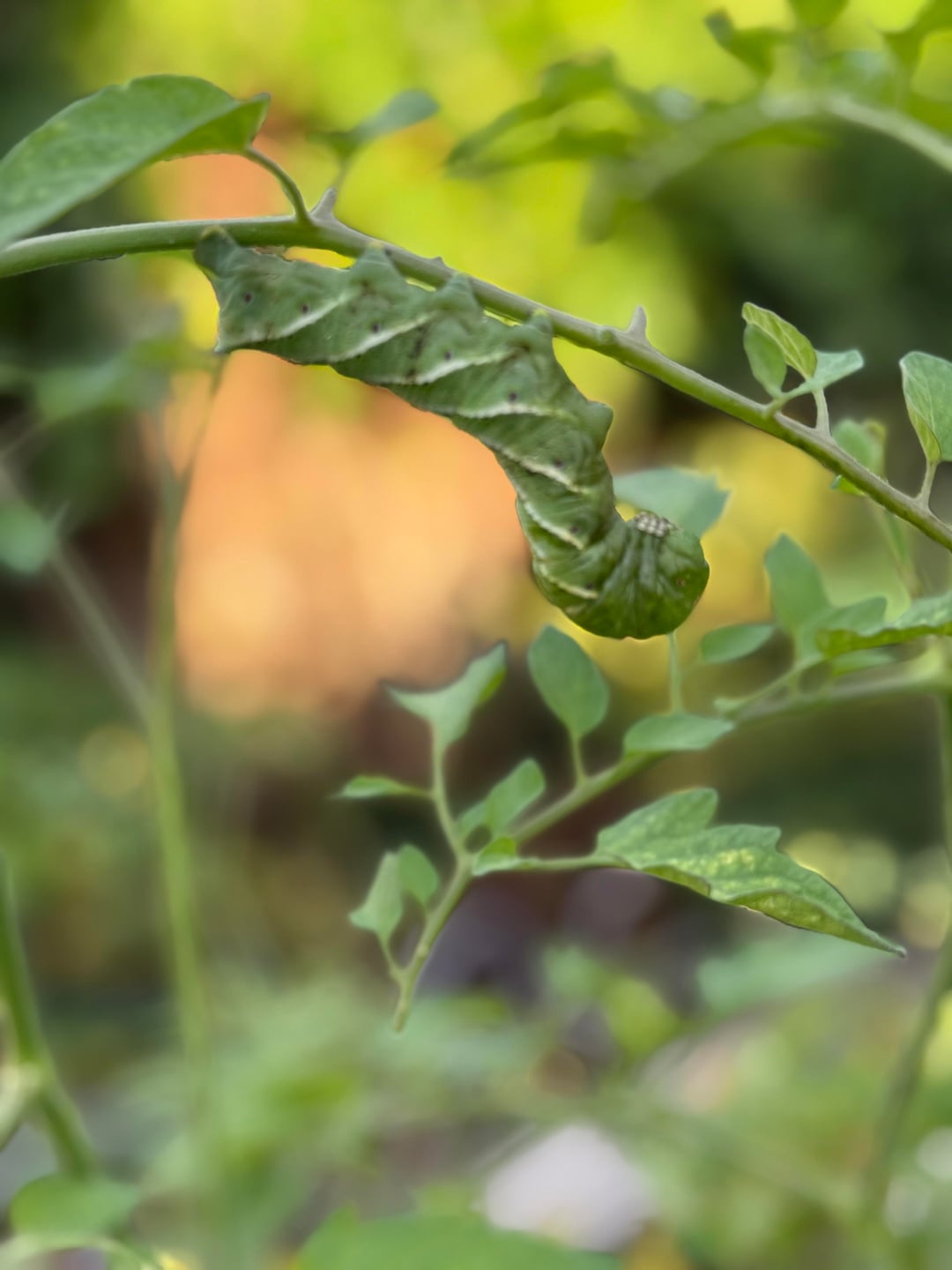 I’ve got native Nightshade in my yard that I transplant these worms to when I find them, since tomato plants are in the same family. Hawk moths are awesome creatures and great pollinators too, so I never kill them. People seem to take so much joy into finding new ways to kill them, as if they’re maliciously eating their plants. It’s just what they do. Not saying anyone should let them eradicate their gardens, but there’s always a happy medium.