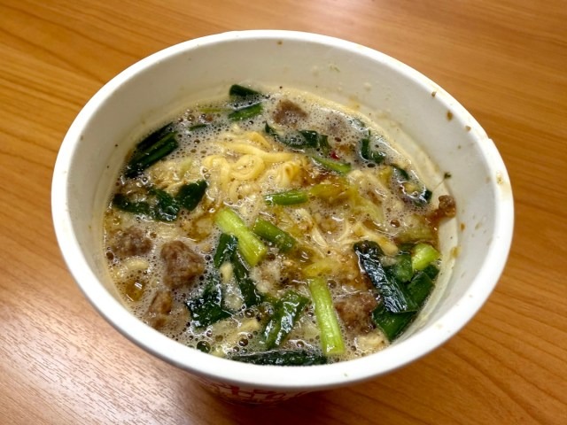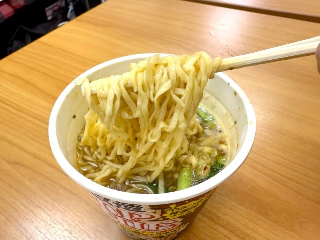When he opened the lid, he was hit with a garlicky aroma that really did remind him of authentic motsunabe. Even the taste was pure motsunabe to him, with almost no trace of typical Cup Noodle. Honestly, this felt more like a completely different product than a modification, but it totally worked.