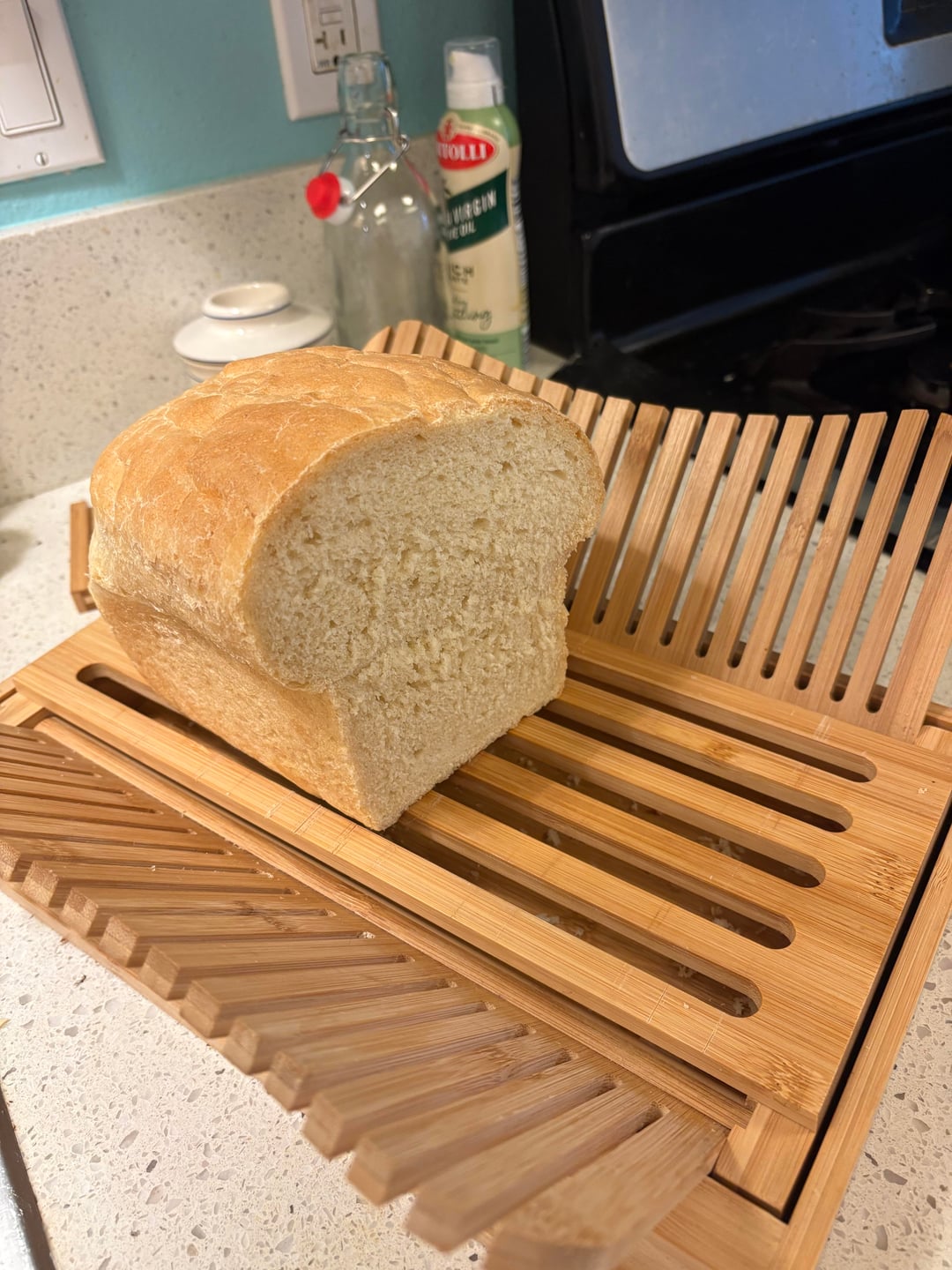 Note – the cut on the bread looks a little strange because my husband won't use the bread board unless I am in his presence to remind him. I tried to even it out when making my toast.