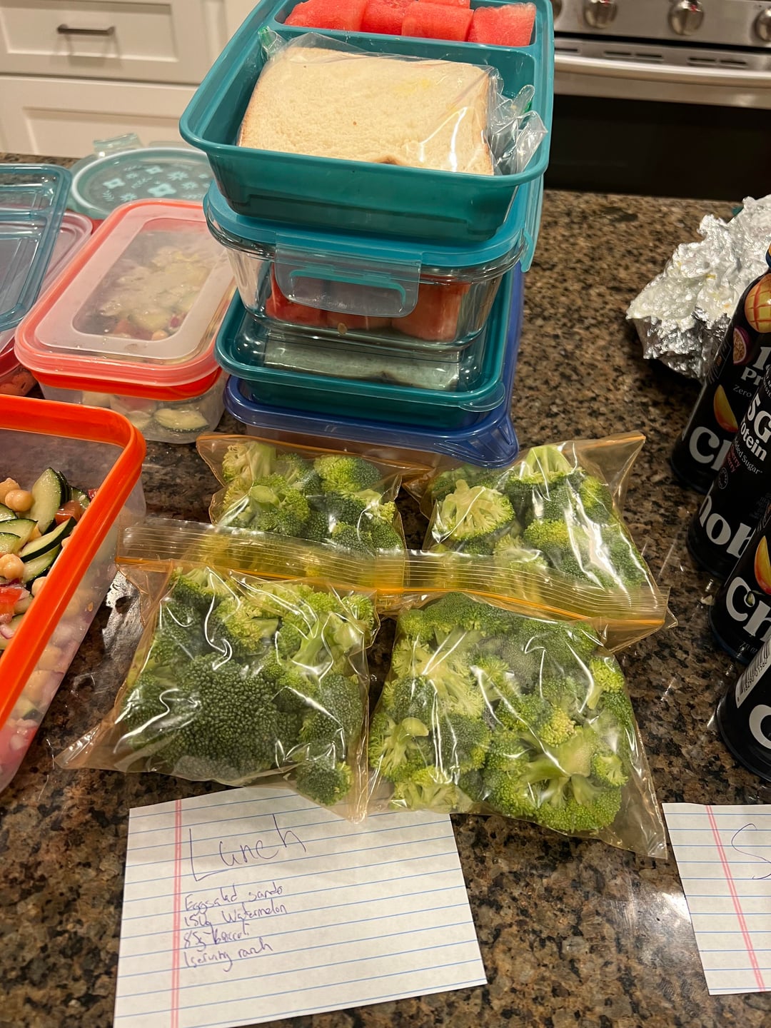 *Lunch- Basic Egg Salad Sando, 150g watermelon, 85g broccoli and 1/2 serving of Ken’s Ranch.