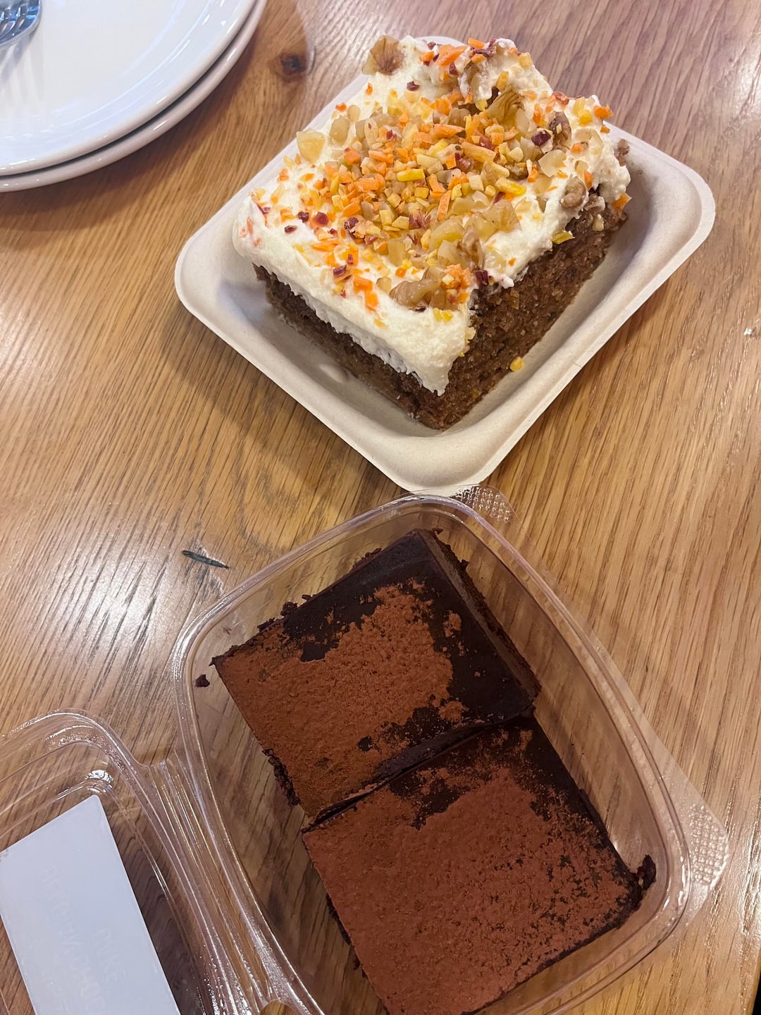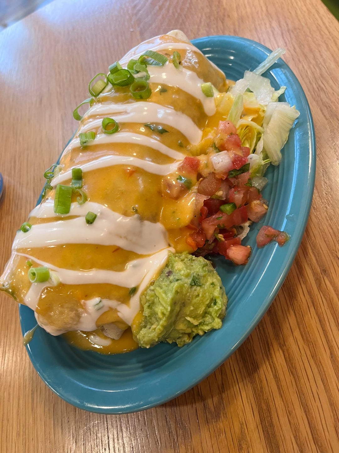 Also known (or formerly known) as Next Level Veggie Burger, in Denver. Holy heck this was some of the best vegan food I have EVER had. First picture is a grilled seasoned chicken patty with lemon butter and chimichurri sauce on the side, as well as herb roasted potatoes and roasted carrots. The chicken was so juicy and tender and the sauces mixed together were SO good. The second picture is the queso smothered burrito and good lord it was life changing. The filling was citrus chicken, rice, grilled onions and peppers, corn, ranchero beans and lettuce. It’s topped with their house made queso (which blew my mind), drizzled with sour cream, and has pico and fresh Guac on the side. I did not order this myself but best believe I will next time (and every time after that). The last picture are the desserts which are the carrot cake and chocolate Belgian cake. Both were incredibly delicious and the chocolate cake was so rich and decadent. Everything was an absolute 10/10. Highly recommend!