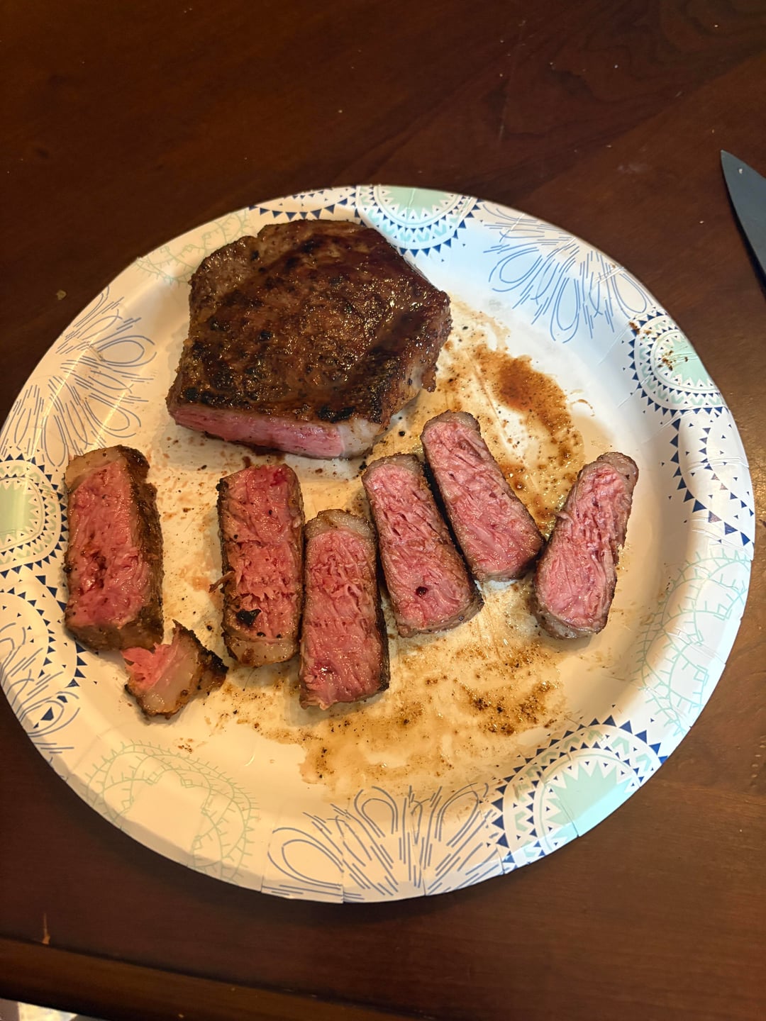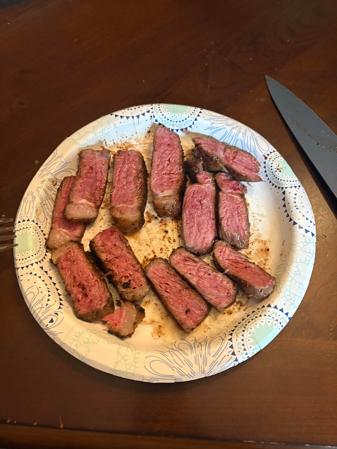 Deerslyr101571 5 months ago It’s medium… not medium rare. But it’s a perfectly executed medium. No grey bands. Nice crust. I prefer medium rare, but I’d smash this like the Hulk.