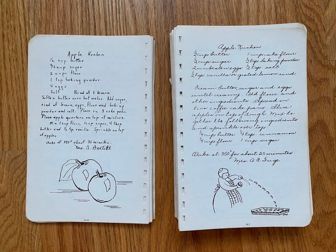 Lovely one! My mom kind of collected these “handwritten” recipe books. As a German the “Kuchen” recipes caught my eye. Apfelkuchen (apple cake) is popular here, and everyone’s grandma has “the best” recipe. 🙂