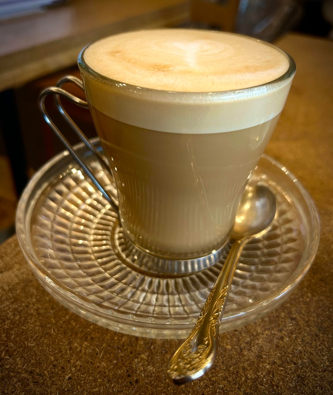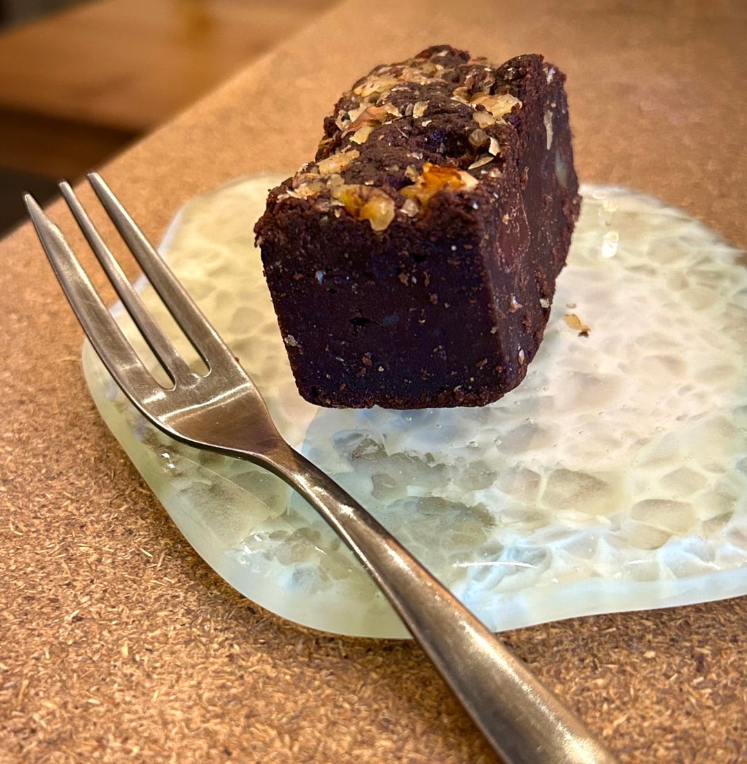 What you see pictured is the Burger Patty Foccacia, a Japanese brownie, a delicious latte and a shot of the vibe at this place.