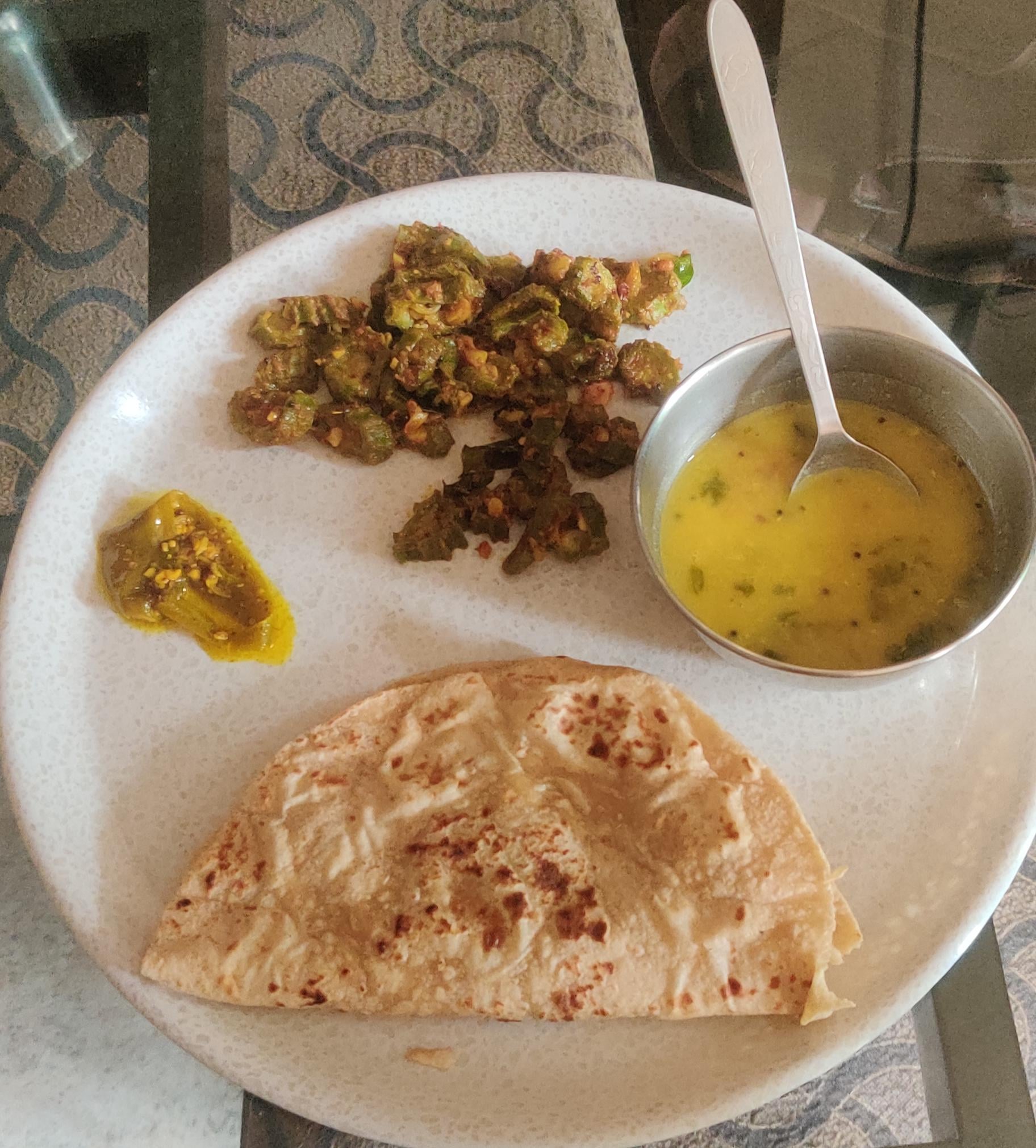 My lunch plate today is – Turai (ridge gourd) plus crushed peanuts masala fry, thick dal, green chilli pickle and chapatiby Ok_Sector1704 1 Comment Supporttroll 4 months ago That looks so good!