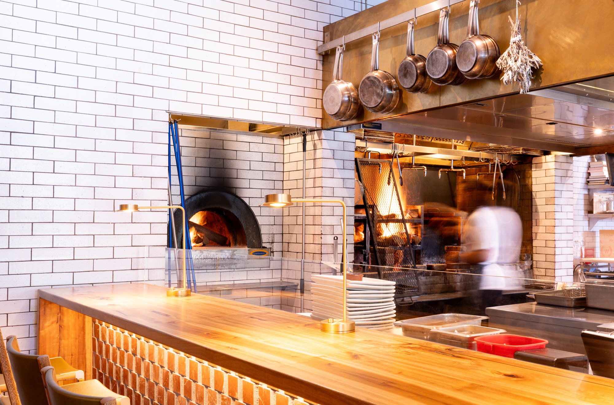 On the antipasti side of things, diners can expect a trio of rotating salads, such as the summer-coded panzanella salad bursting with heirloom tomatoes and figs, but a mainstay will likely be the Bosco Caesar. This is certainly a nontraditional Caesar, leaving behind romaine and instead using escarole and roasted broccoli as the base, topped with crispy sourdough breadcrumbs and nutritional yeast, plus bits of Sicilian oil-cured anchovies. The octopus carpaccio could be another standout dish, featuring slices of octopus dressed in a caper-raisin puree. Sides also include grilled romano beans and heirloom polenta with marinated mushrooms. Hill will also lead the charge on desserts with rum baba, a rum-soaked cake made with yeast, a chocolate tart, and limoncello tiramisu, giving the Italian dish a bright citrus twist to the original.