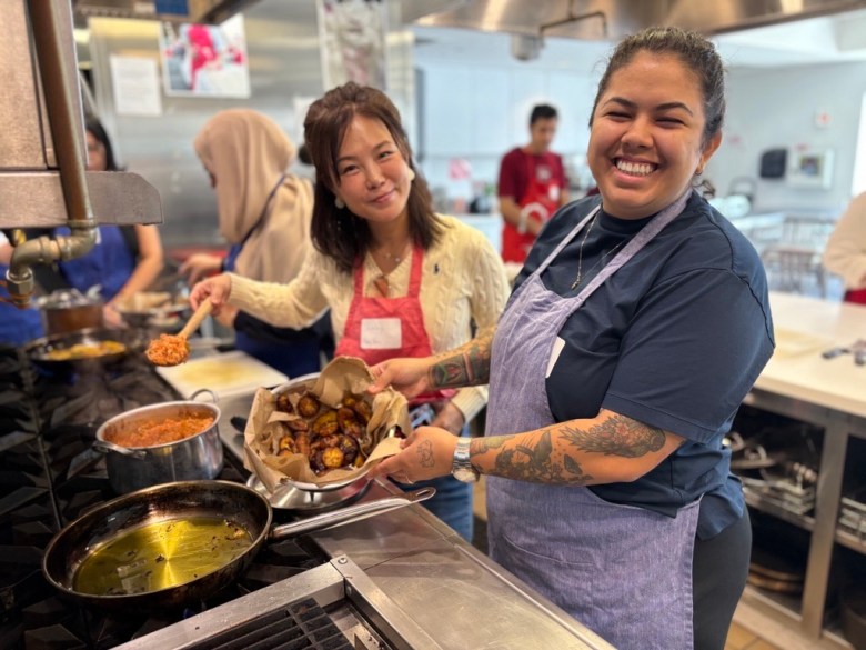 “So there’s a lot of great community building and practical English learning that’s happening while they’re working on the recipe together,” she said. “And often, the only language that they share to communicate in is English, and so they’re having to do this sort of complex group task in English.”