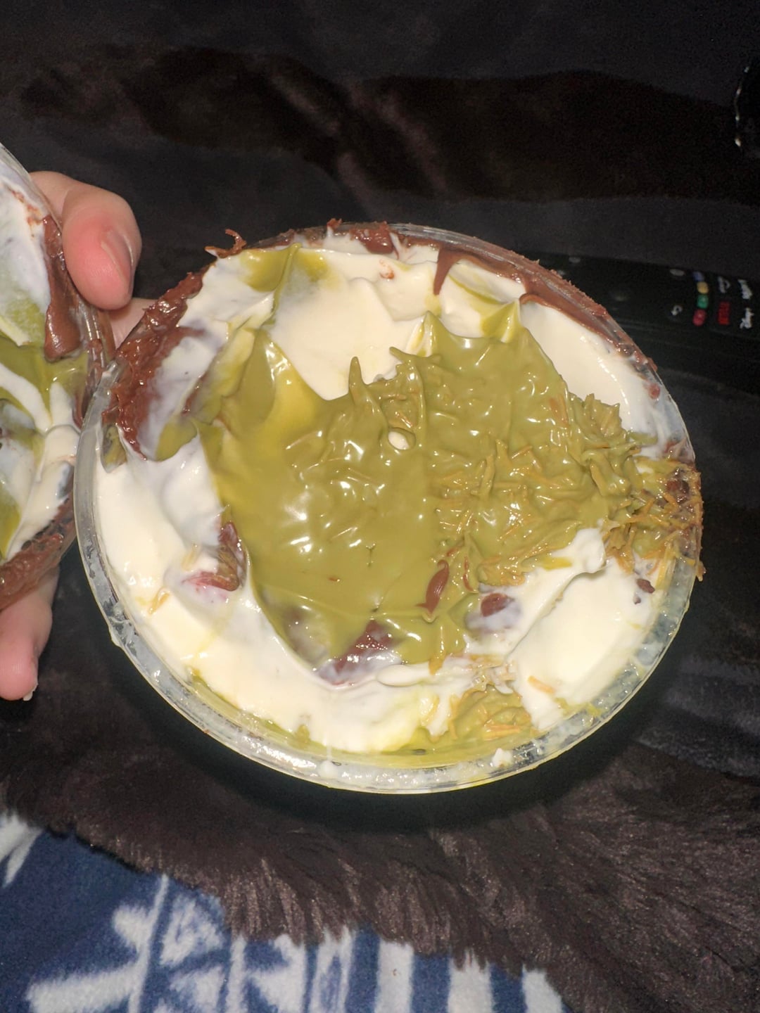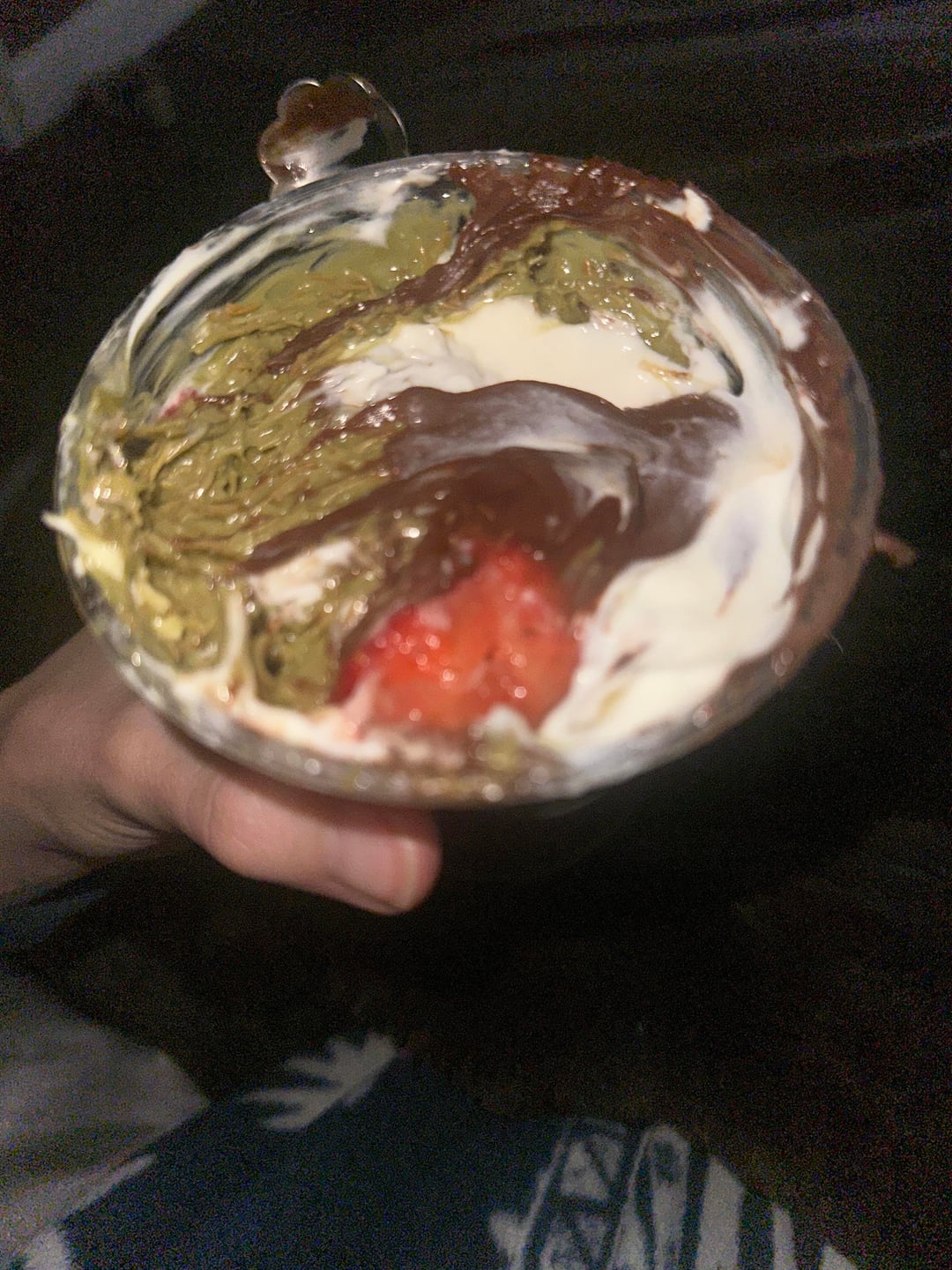 How many cals in this Dubai yoghurt pot with yoghurt , pistachio, Nutella , strawberries and kunafa pastry? by Affectionate_Ice4458 1 Comment universwirl 2 months ago Wow yum!