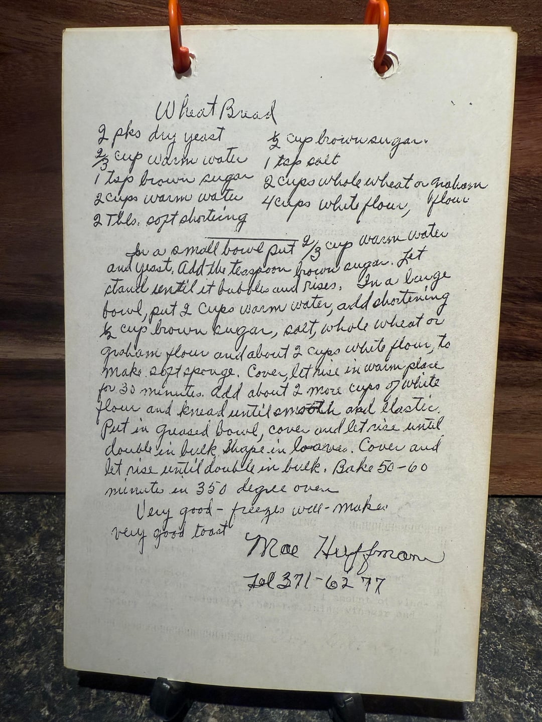 Bake 50-60 minutes in 350 degree oven. Very good – freezes well – makes very good toast.