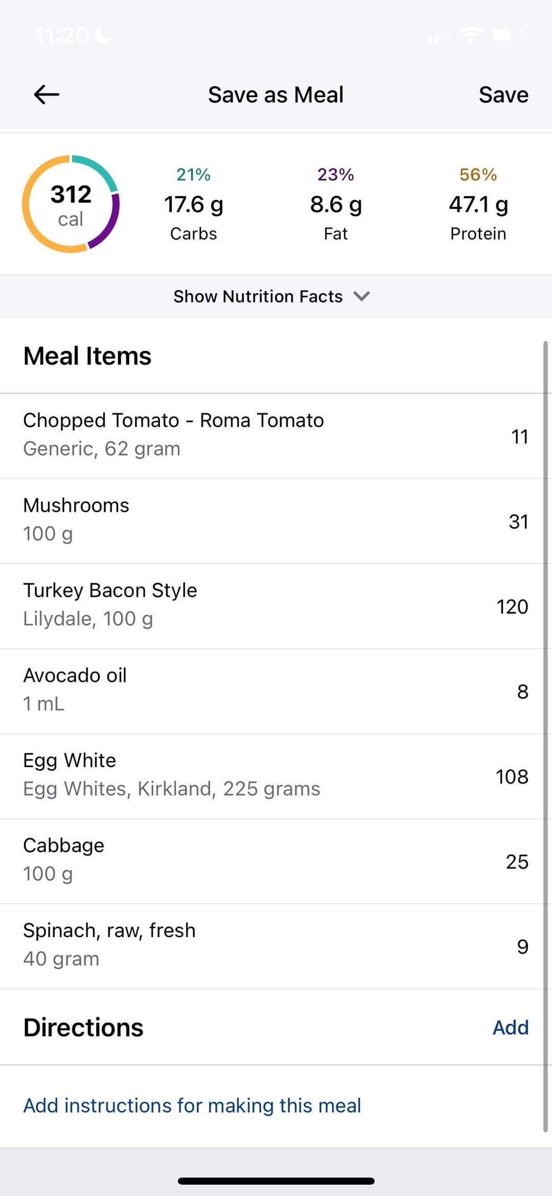 Spinach and mushroom egg white omelet, turkey bacon, roasted tomato and cabbage waffles by YoureAn8 Dining and Cooking