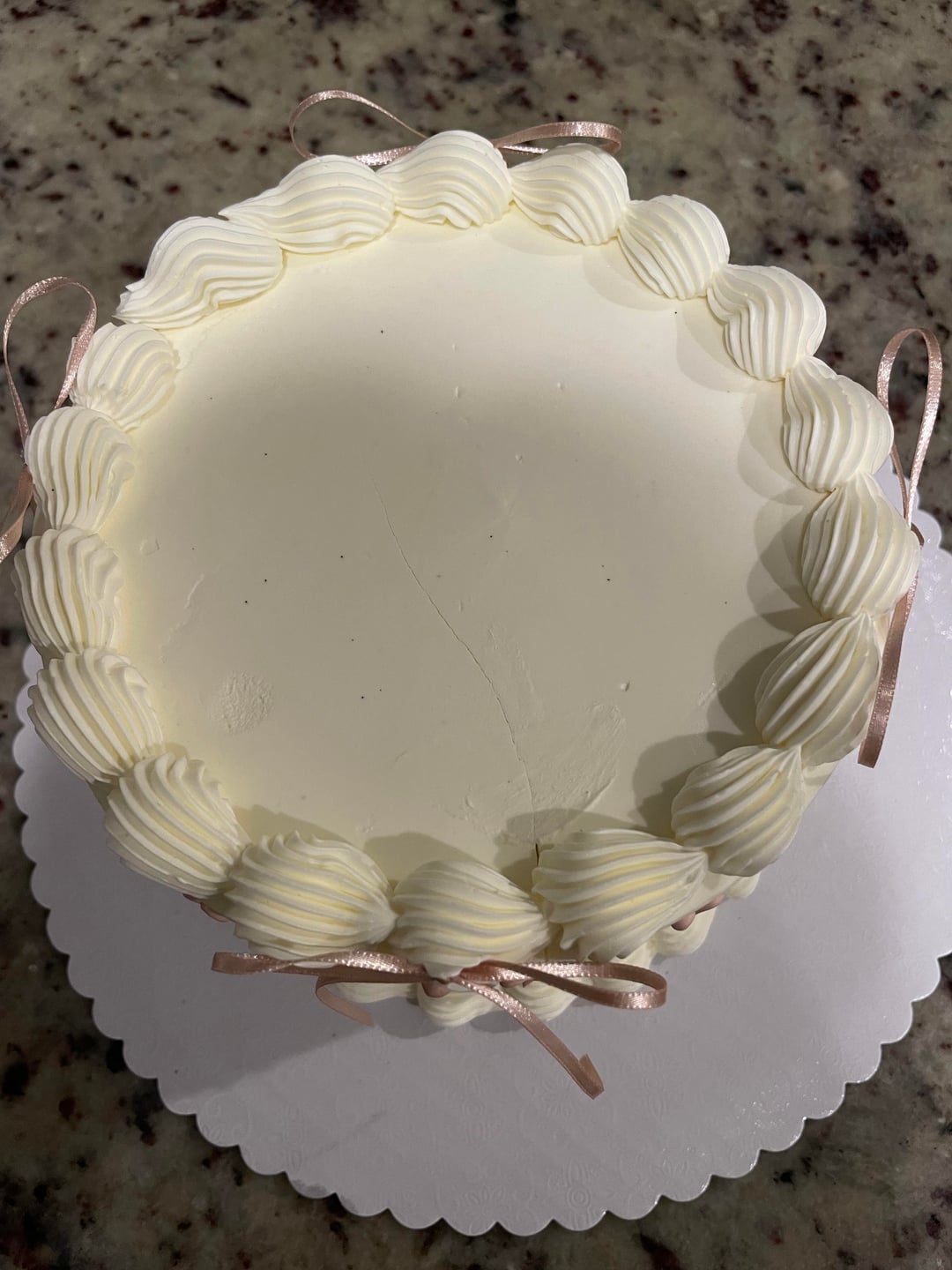 I took my frosted cake out of the freezer and it had this crack in it, it’s never happened before!