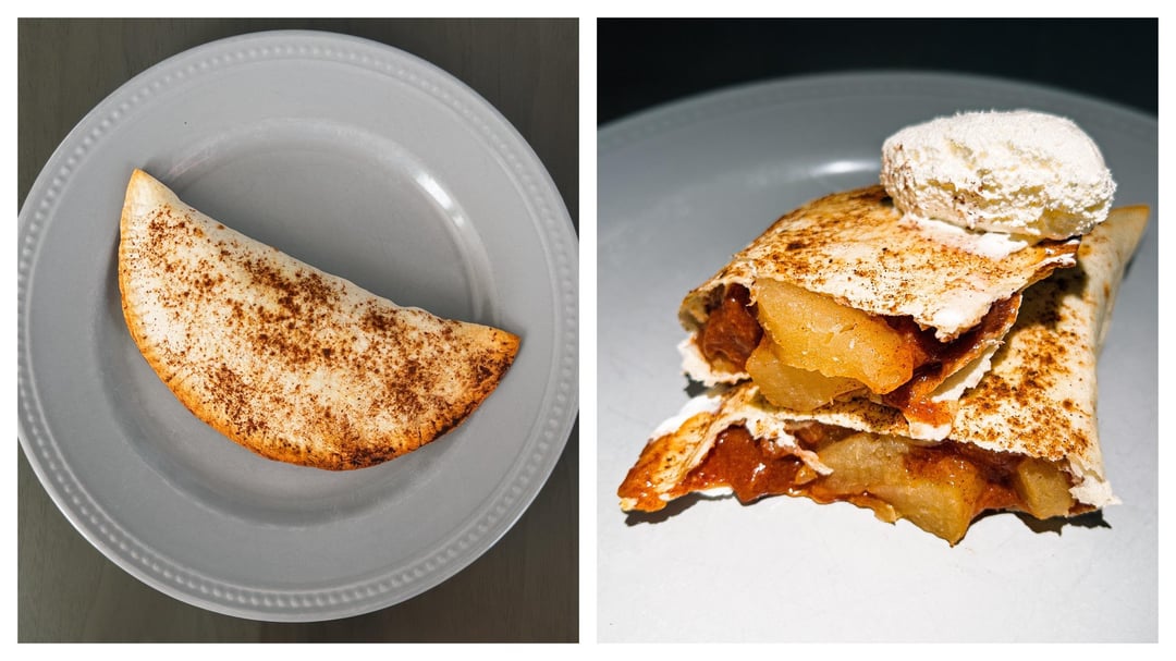 5. Spray top lightly with cooking spray, especially the sealed edges. Optionally spray bottom of tortilla. Sprinkle with apple pie spice.