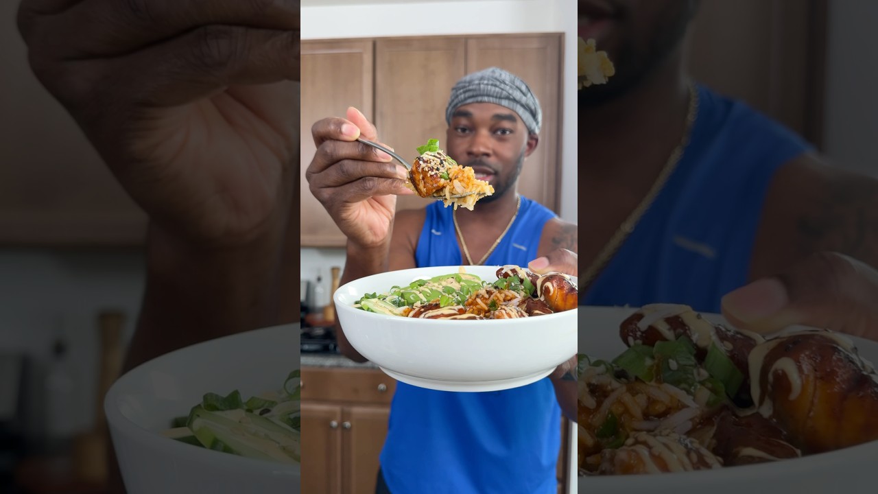 Look, I know I said f that diet, but I made this honey chipotle salmon and rice bowl. Let me show you how to get done big old salmon flavor. Cut this belly meat off. Boom. Cut a little slit right between the salmon and the skin. Get your fingers right on up under that thing. Slide. We got the skin and then we got the salmon. Take this and we going to cut it into cubes. Avocado oil, nature seasoning, smoked paprika, and chili powder. Mix it all up. Just like that. Next, we going to make some cilantro lime rice. I got some cilantro. Got two limes. Roll them so all that juice is ripe and ready. Going to get a bowl. Basmati rice. Look at that rice right there, baby. Cilantro, those limes. Just like that. You got some beautiful cilantro, lime rice. For the honey chipotle sauce, you’re going to need some chipotles and adobo. And a little bit of that juice. Next, we’re going to go with some honey, cilantro, green onion, some minced garlic, freshlysqueezed lime juice. A little honey chipotle sauce. I got an English cucumber here. Peel a little bit off. Give it like a little tiger stripe look. See, they kind of look striped a little bit. Sauce pan over medium high heat. Once it gets hot, hit them with some avocado oil. Fresh squeeze lime juice. Put these to the side. Same pan. Get a couple tablespoons of butter. That’s unsalted butter, by the way. Go ahead with that honey chipotle sauce from earlier. Add the salmon back to the pan. Once it’s all coated in that sauce, that’s when you know it’s time to plate up. Some of that cilantro lime rice, cucumbers, little extra sauce. The honey chipotle sauce on the salmon is crazy. Avocado, the cucumber, you got to get everything on that spoon right there. Y’all got to try this one out. Let me know when you do already know. So hot. and go.